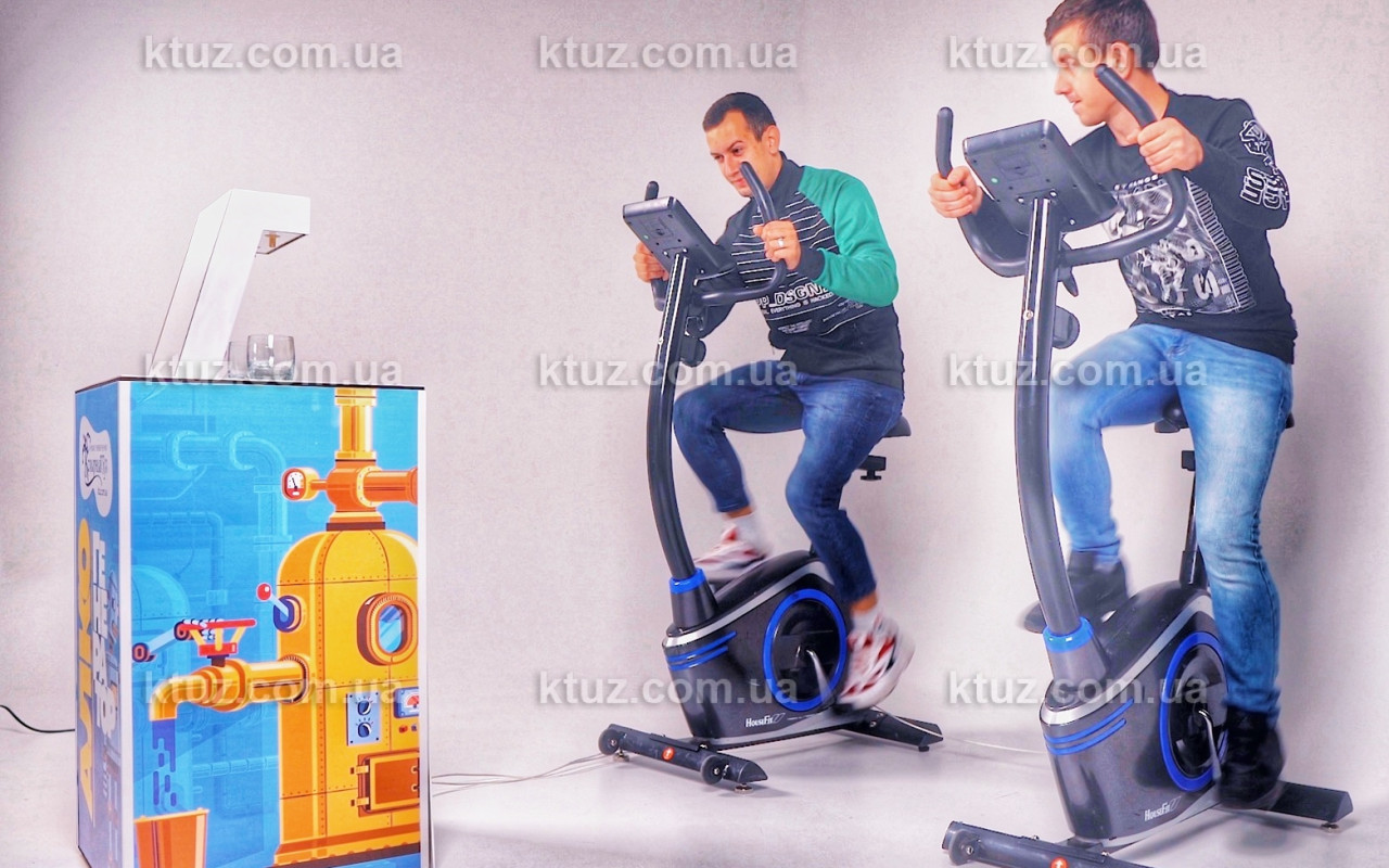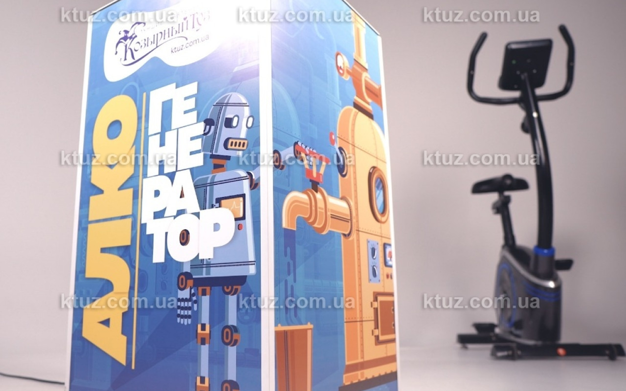 В коллекции корпорации праздников «Козырный Туз» появилась новинка для поклонников нестандартных развлечений — аттракцион «Алкогенератор». Спешим вас заверить — ничего противозаконного мы не предлагаем! Но чтобы добыть бокал вожделенного напитка, придется изрядно поработать вашим ногам. Гостям предлагается крутить педали настоящего велотренажера. И чем быстрее они это будут делать, тем быстрее наполнится бокал пивом, вином или другим выбранным напитком.