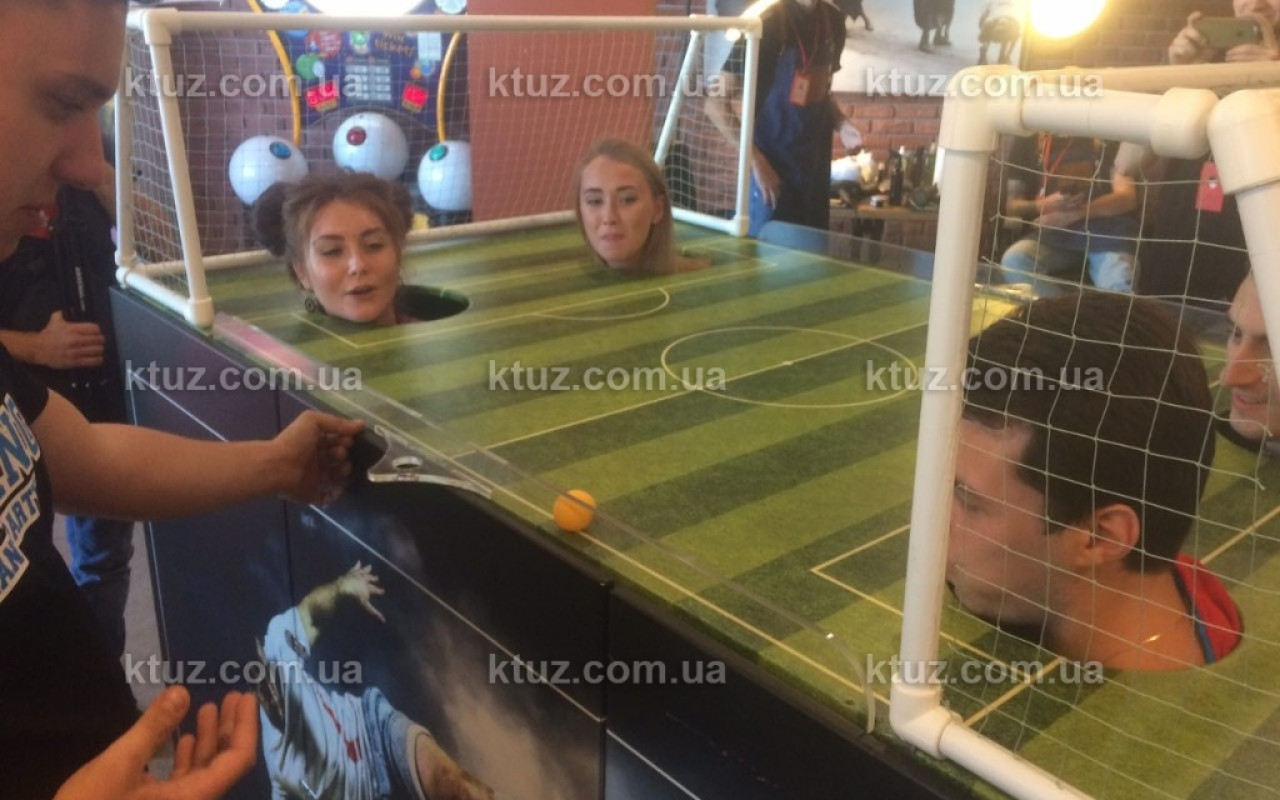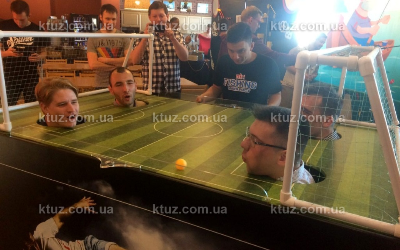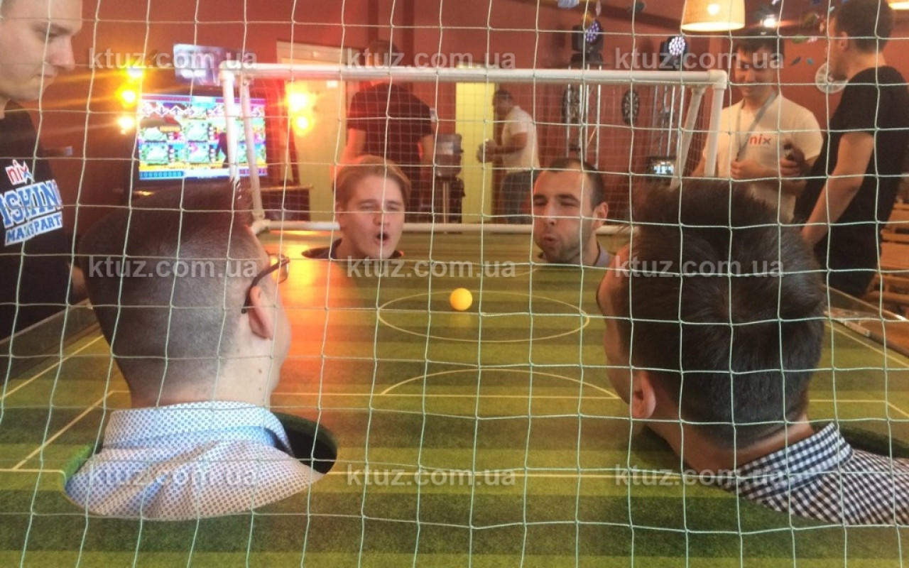 К "столу" приглашаются две команды по два человека. Они располагаются на стульях внутри футбольного поля. Задача каждой команды забить больше голов, чем пропустить. Забиваются голы с помощью дуновения ветра из легких участников. Судьей выступает наш инструктор. Он также выставляет мяч на исходную позицию, после забитых голов.