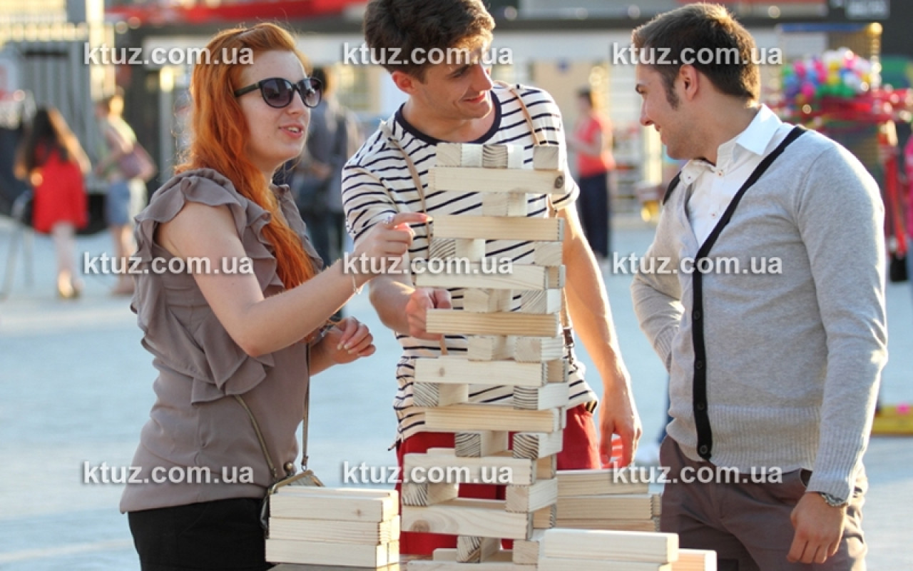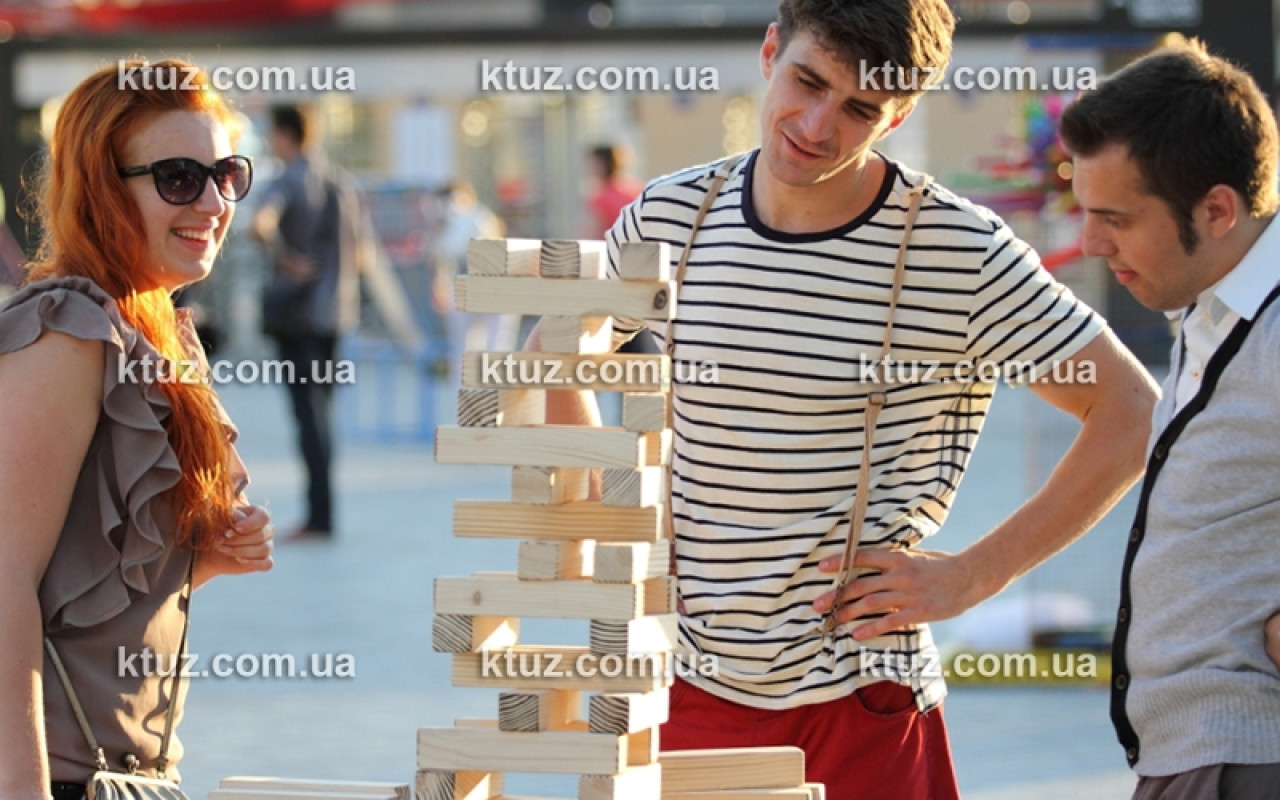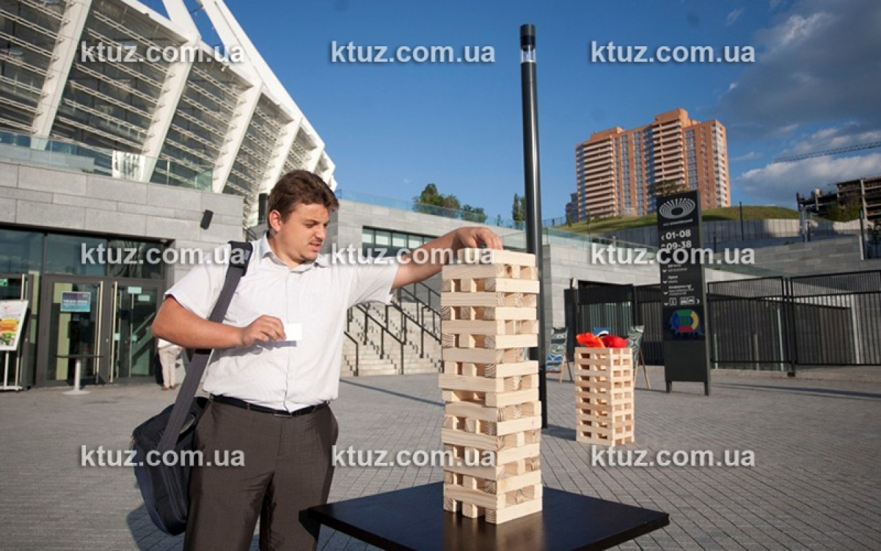 Любите разгадывать головоломки? Представляем Вашему вниманию эксклюзивный аттракцион – Козырная башня или, как его еще называют, дженга - в аренду. Это игра, где необходимо проявить точность движений, расчет и логику. Правила игры очень просты: каждому игроку необходимо вытащить из башни брусок и переместить его на верхушку. Игра продолжается до тех пор, пока башня не рухнет. Проигрывает тот, чей ход разрушит конструкцию.