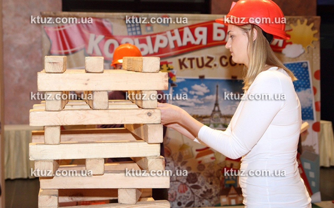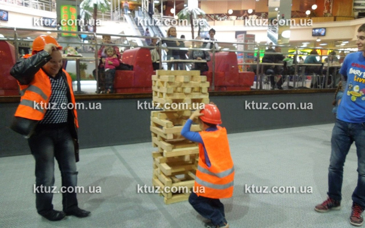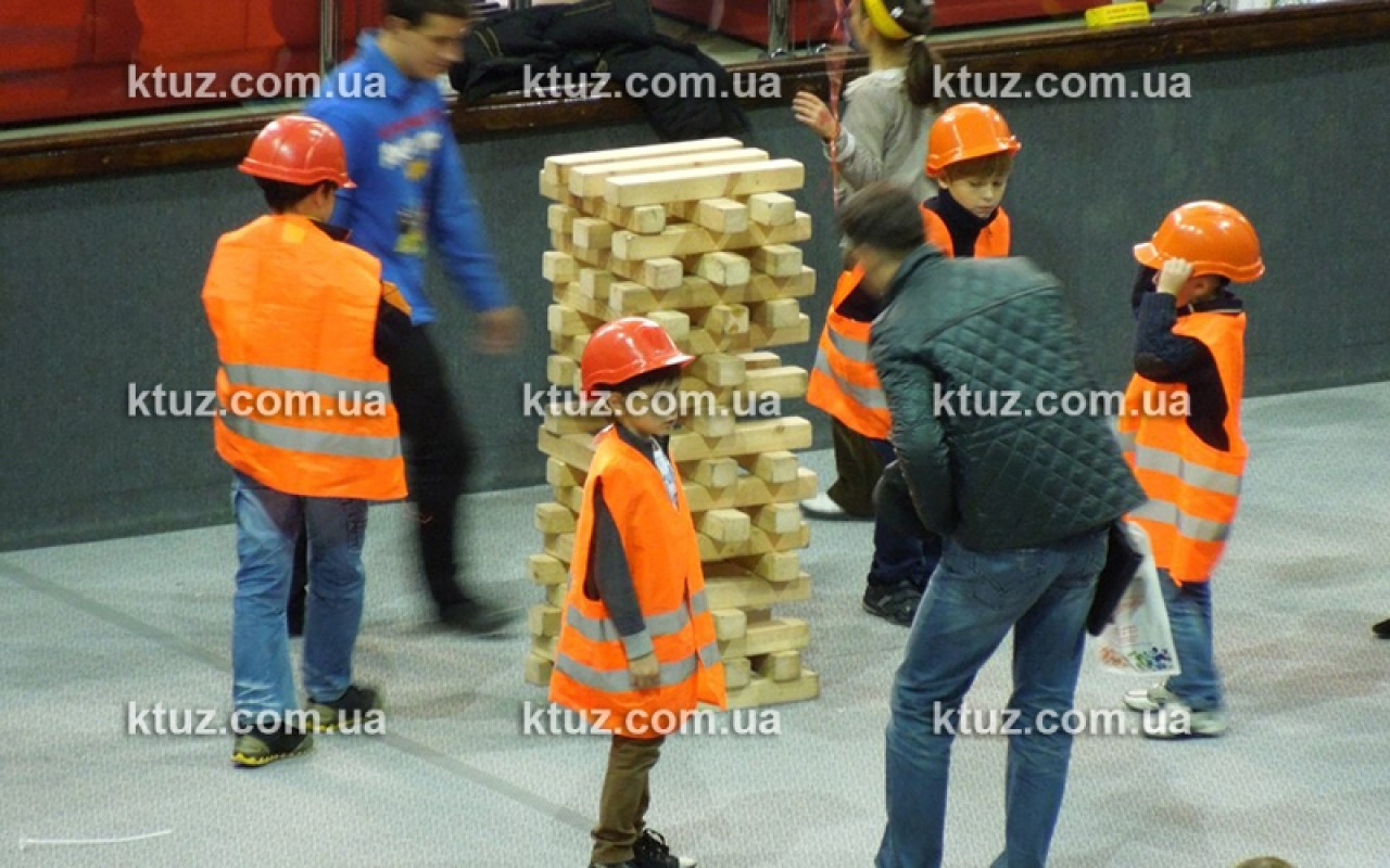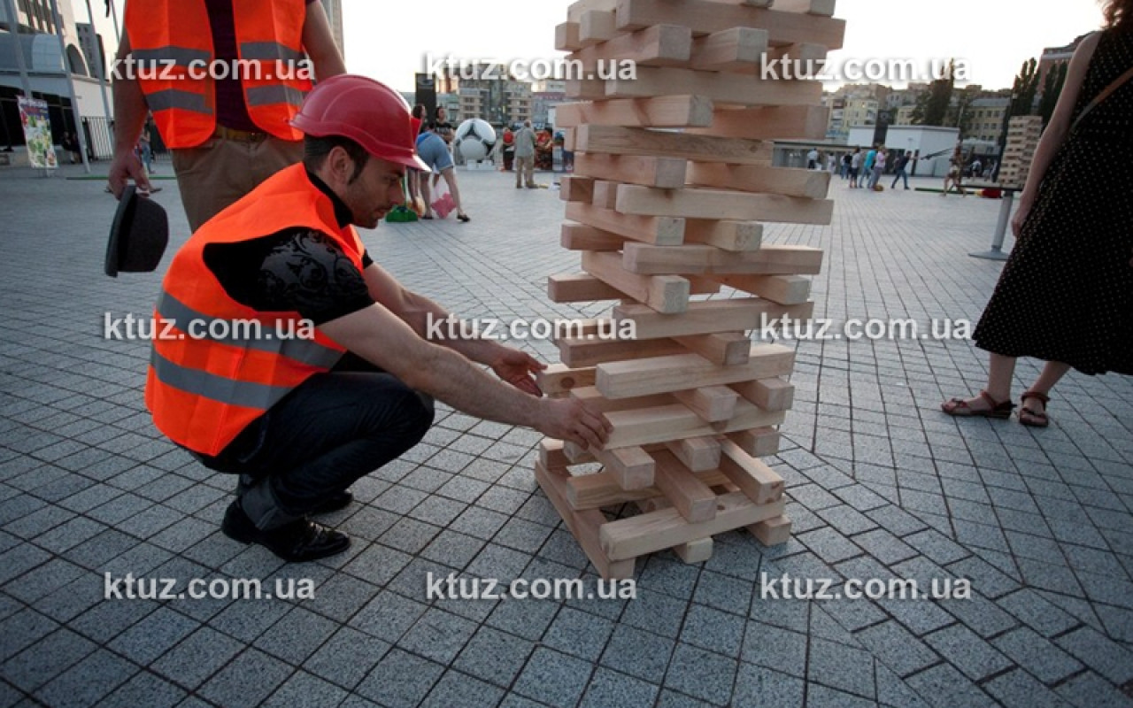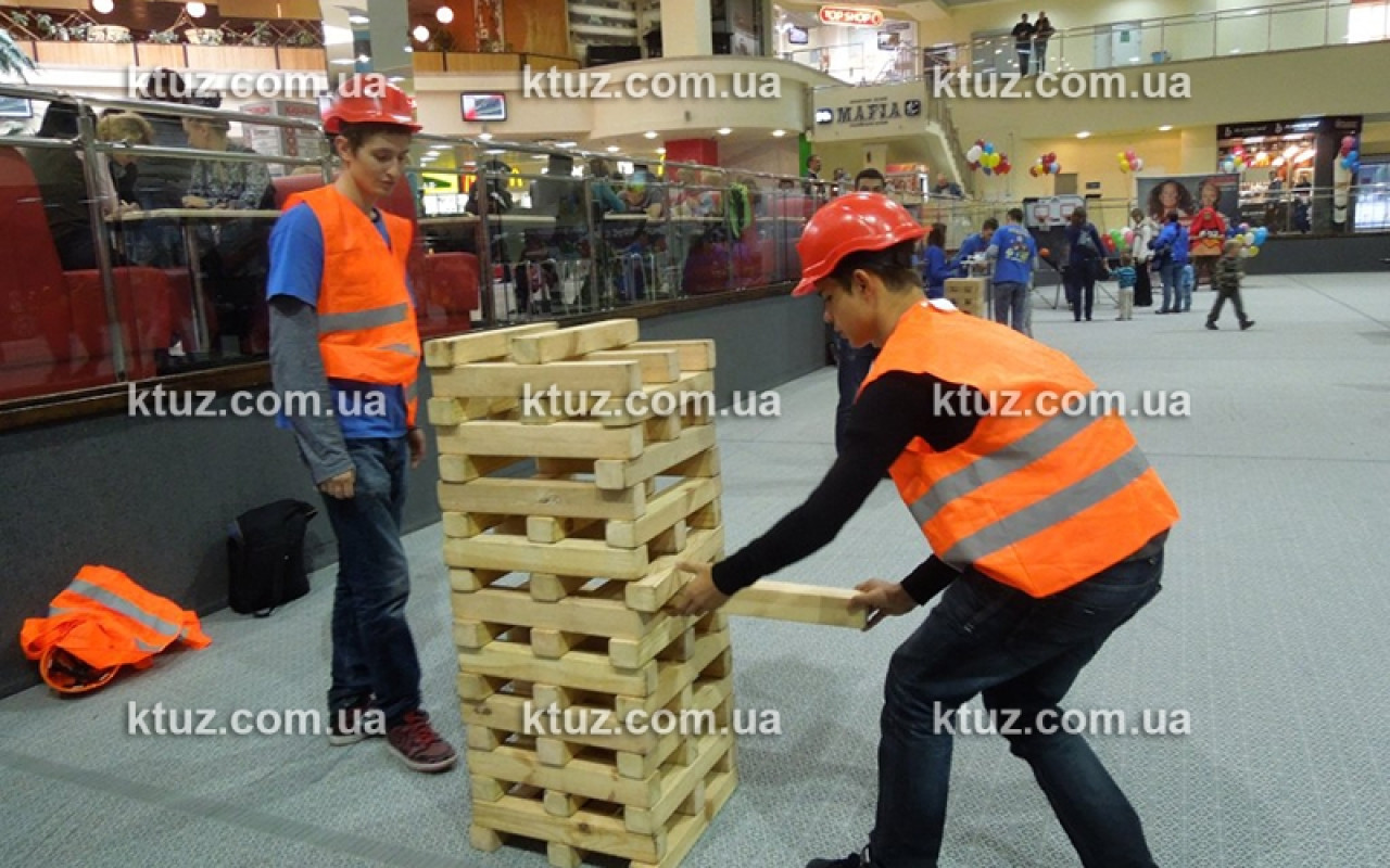 Настоящий тест на профпригодность! Уникальный способ выявить навыки строителя. Игрокам выдается оригинальная спецформа: каска и жилетка. Вы должны построить большую башню из брусков, длиной 50 см. Каска выполняет несколько функций.