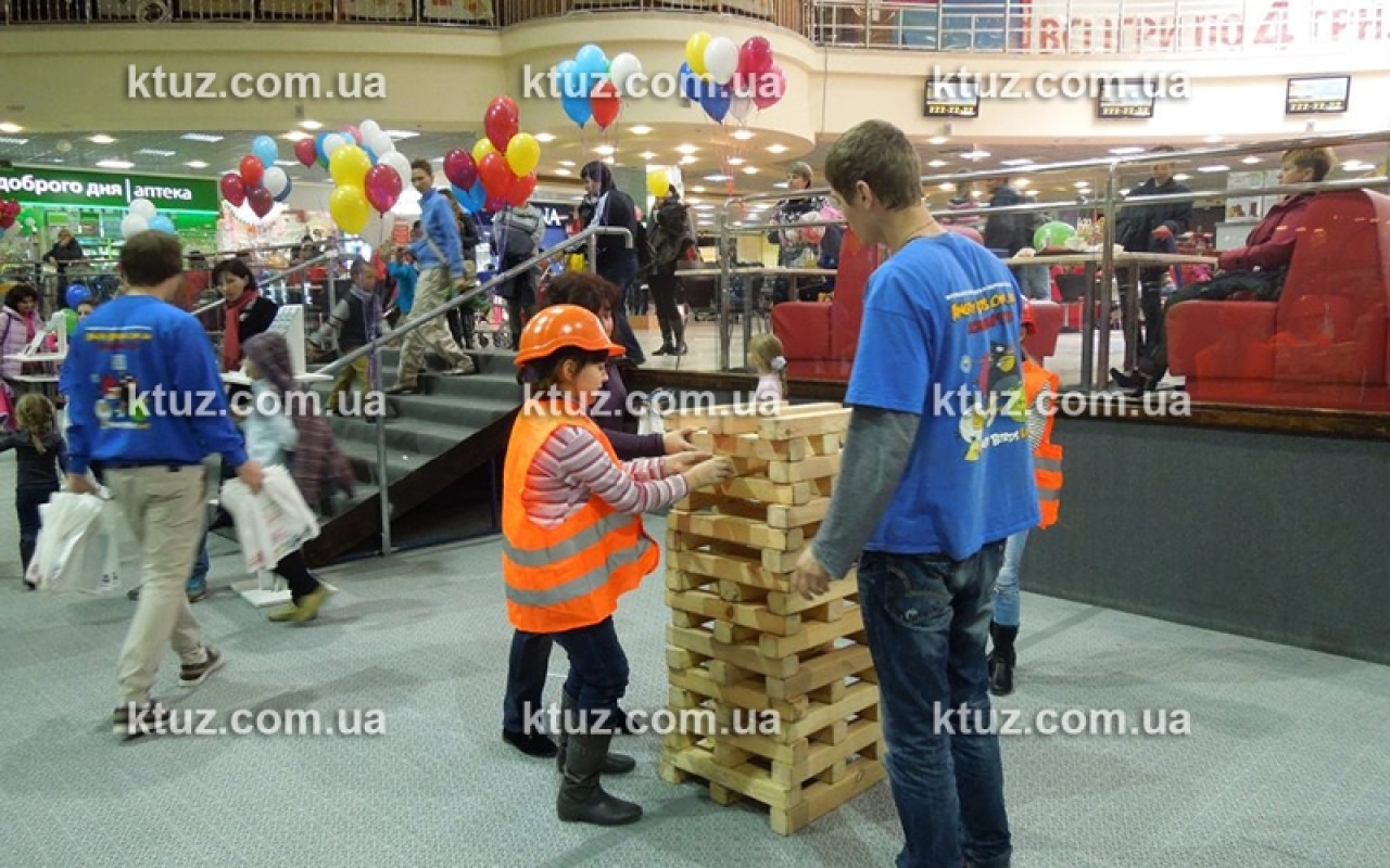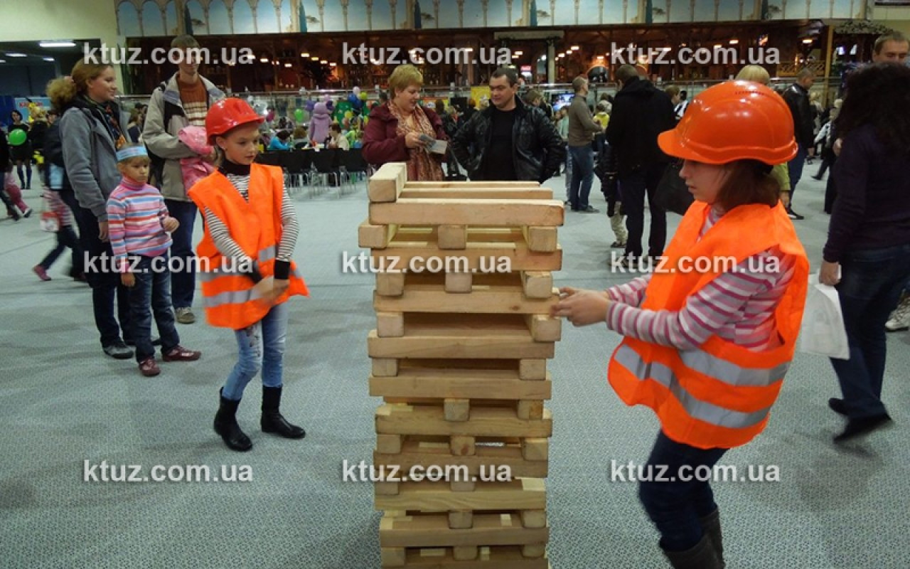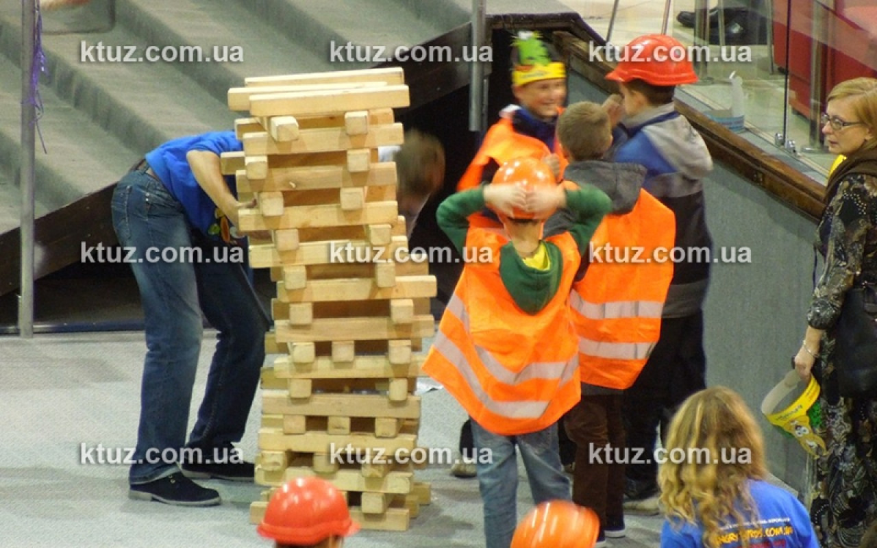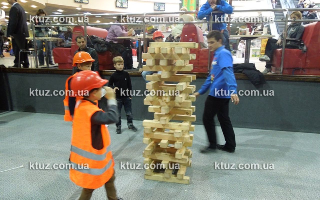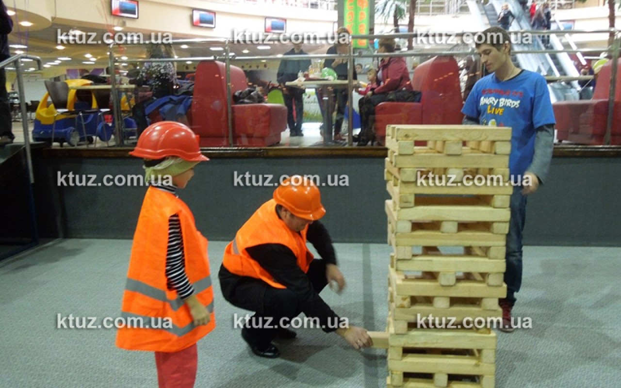Настоящий тест на профпригодность! Уникальный способ выявить навыки строителя. Игрокам выдается оригинальная спецформа: каска и жилетка. Вы должны построить большую башню из брусков, длиной 50 см. Каска выполняет несколько функций.