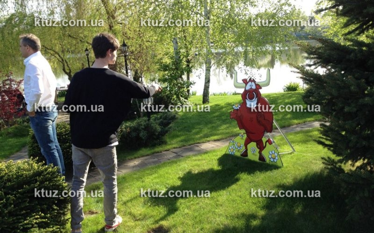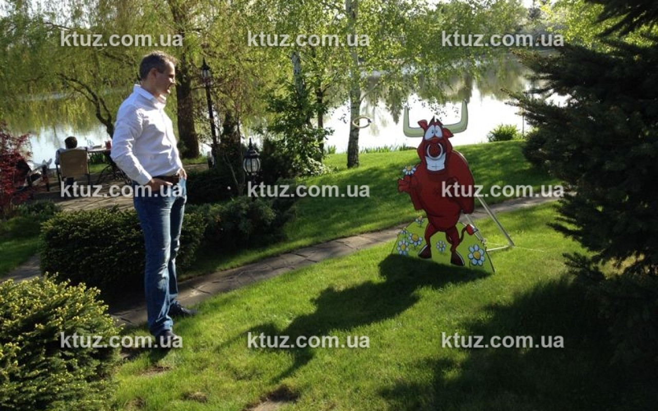 Услуга представляет собой красочную конструкцию в виде симпатичного быка. Игроку нужно закинуть лассо или кольцо на рог быка. При проведении конкурса или командных соревнований, побеждает тот, кто оденет больше всего колец на рога или закинет лассо быстрее остальных.