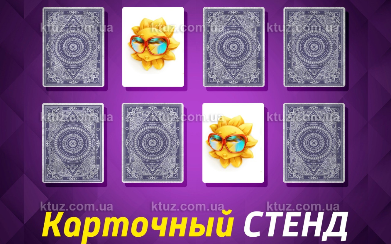 Начиная игру, ведущий раскладывает на стенде 20 карт лицевой стороной вверх. В течении 15 секунд игрок должен постараться запомнить их расположение. Затем ведущий переворачивает их вверх "рубашками". Участник открывает карты попарно и оставляет видимыми совпадающие.