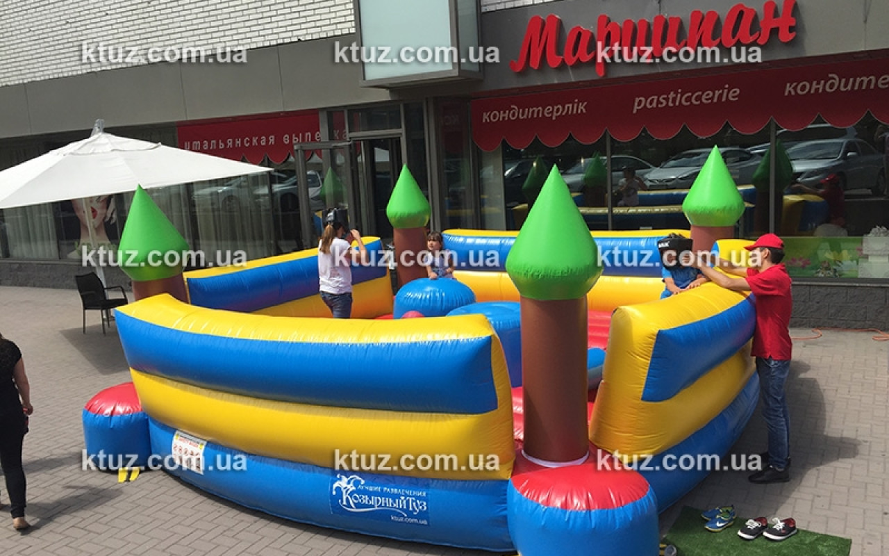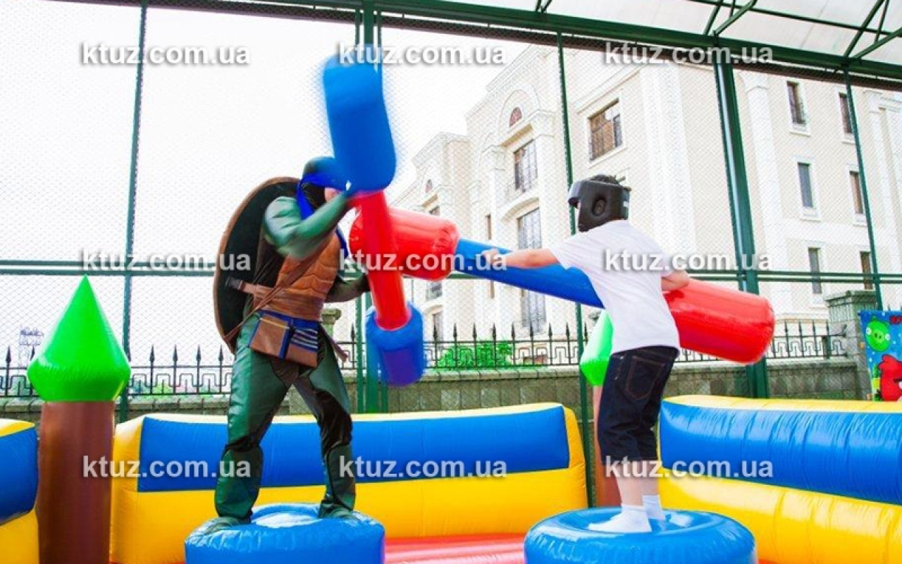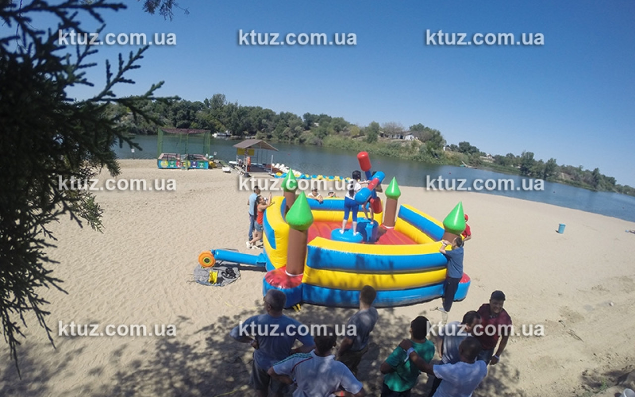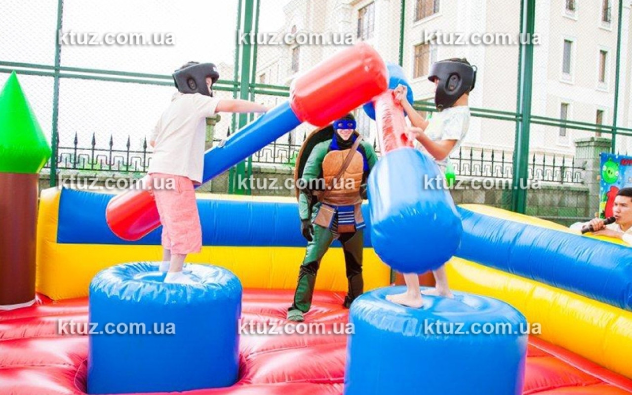 Правила игры на нашем аттракционе довольно простые: нужно столкнуть своего соперника с надувного пьедестала с помощью мягкой палки. Пока участники будут бороться, остальные гости смогут посмотреть захватывающее и смешное зрелище. Батут Бои гладиаторов абсолютно безопасен в использовании. «Оружие» и поле битвы изготовлены из прочных материалов, к тому же, они – надувные. Аренда надувных батутов приносит игрокам и зрителям позитивные эмоции, смех и море радости.