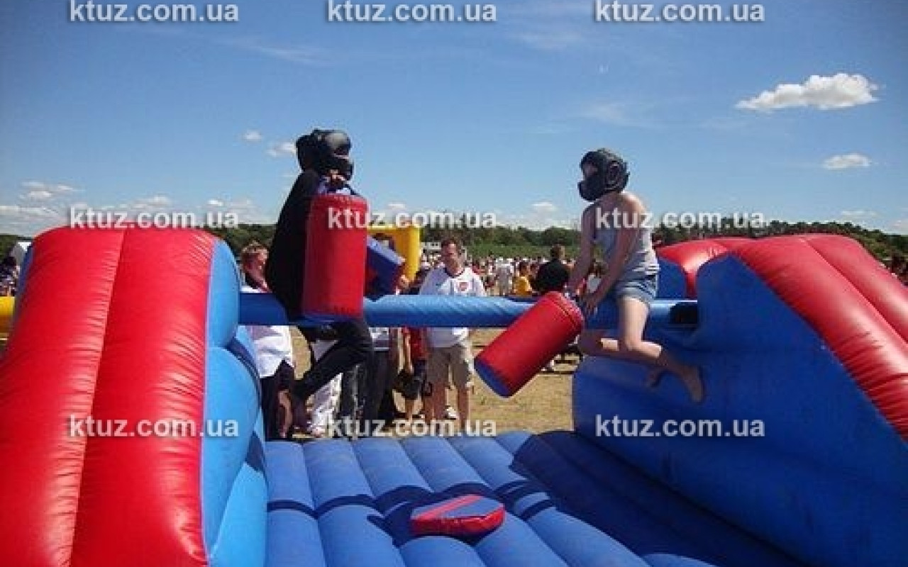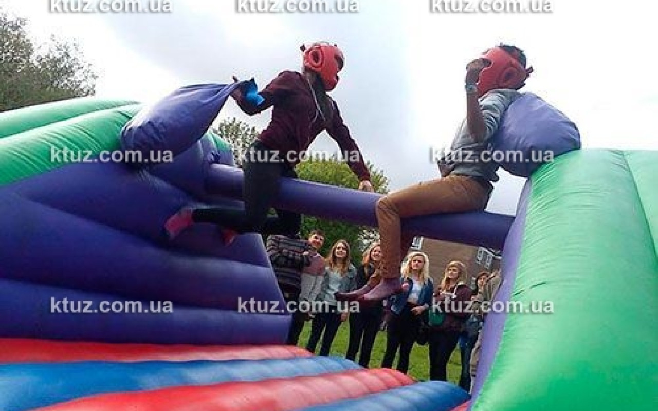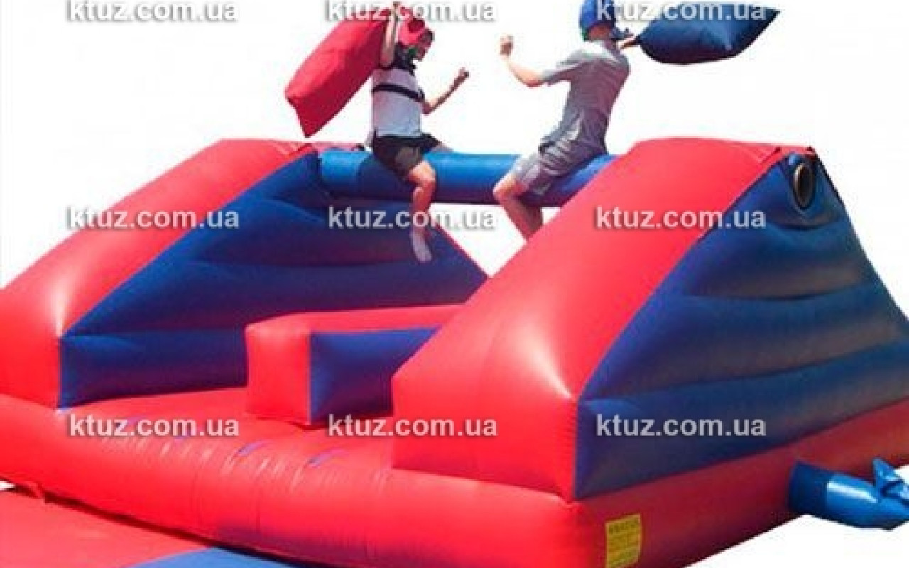 Какое развлечение из детства Вы лучше всего помните? Это, конечно же, бой подушками! Какой же тихий час в детском саду обходился без такого развлечения? И вот сейчас, компания Козырный Туз дарит редкую возможность вернуться в беззаботное детство и вновь сыграть в увлекательную игру. Только сейчас Вы можете не бояться гнева воспитателей! Веселитесь от души. Бои на подушках – это наш новый соревновательный аттракцион. Он представляет собой надувной батут с перекладиной. Игрокам выдается оружие – подушки. Здесь принимают участие два игрока, задача которых столкнуть противника с перекладины, лишив его равновесия. Ваше «оружие» в этом поединке – подушка, сделанная из прочного материала. Вы можете спокойно ее применять, ведь наша подушка создана специально для боя и не испортится!