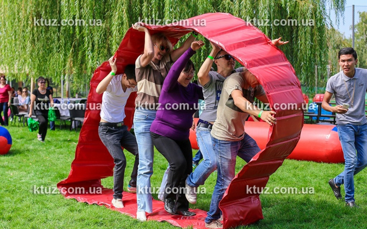 Наша Гусеница для тимбилдинга – неотъемлемая часть командообразующего тренинга. Также подойдет для конкурсов на любом другом празднике. Наш аттракцион Вы можете использовать даже на детском дне рождении. Аттракцион абсолютно безопасен для детей, поскольку сделан из мягких и легких материалов. Детвора с огромных удовольствием сыграет в оригинальный «паровозик»! Командная гусеница – это новый аттракцион компании Козырный Туз. Будет отличным дополнением для летнего корпоратива компании и для любого другого Вашего праздника. Проведите уникальные конкурсы для коллег и друзей!