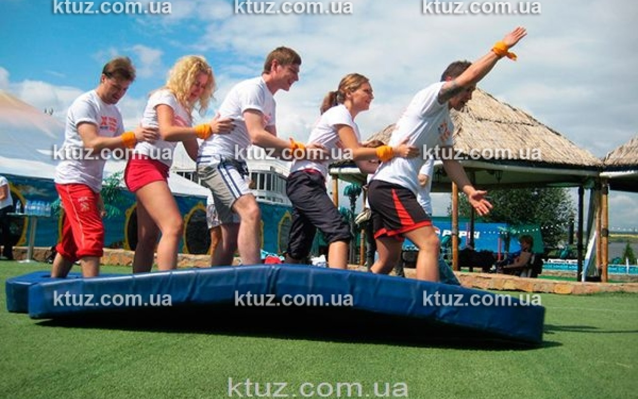 Для игры на новом аттракционе компании Козырный Туз Вам понадобится пять человек. Им необходимо выстроиться в одну колону и надеть одну пару лыж. Точно так же должна сделать и вторая команда. По свистку необходимо добраться до финиша быстрее соперника. При этом дойти должна вся команда. Весь состав должен действовать слажено, чтобы обогнать противника.