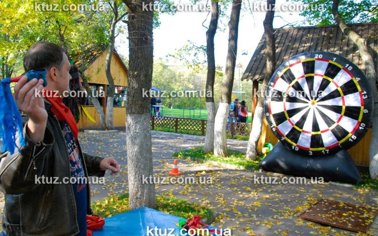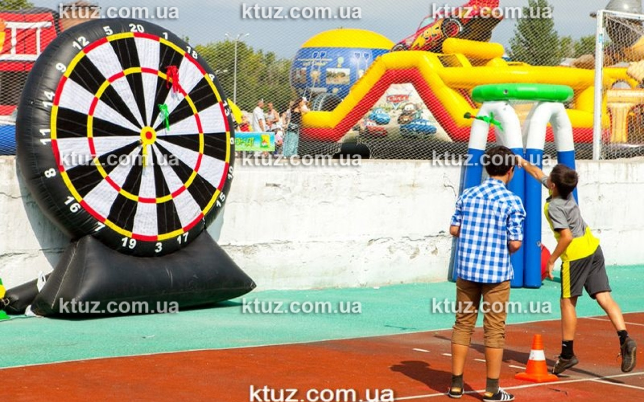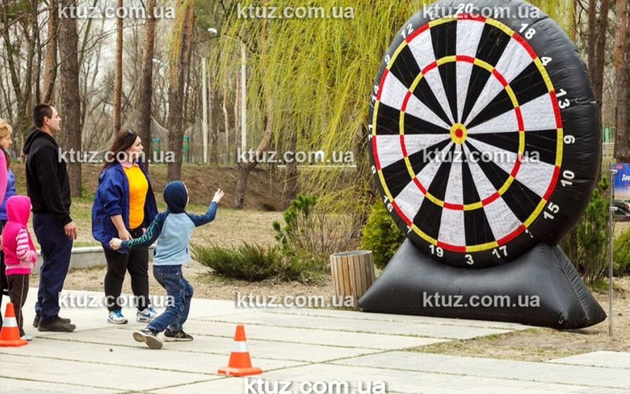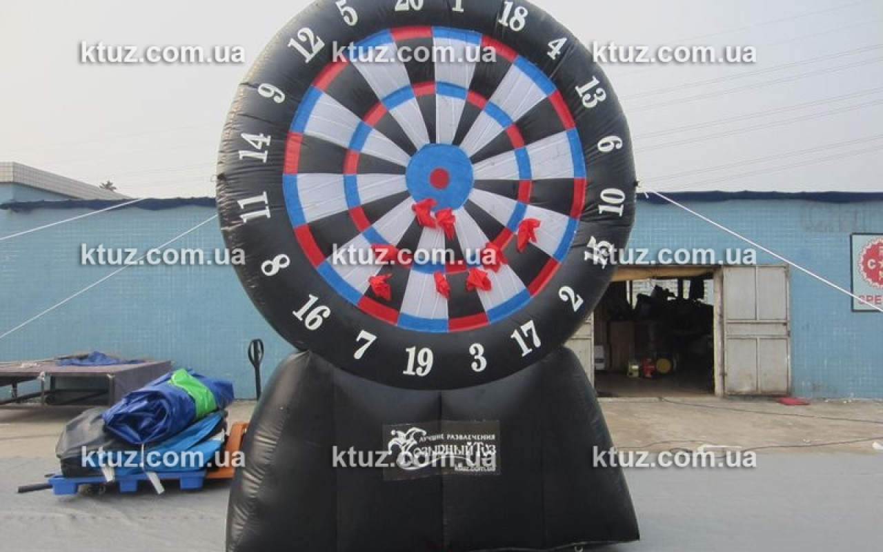 Всем известна игра Дартс. Во многих пабах и барах весит классическая мишень и посетителям предлагают незатейливую игру, чтобы разнообразить вечер с друзьями. Компания Козырный Туз приготовила новый вид популярного развлечения – Гигантский надувной дартс. Размер мишени в таком развлечении весьма внушительный, так что ни один игрок не промахнется. Это значительно облегчает задачу и делает игру доступной для детей. Еще один плюс – безопасные «дротики», которыми могут пользоваться абсолютно все, без риска пораниться.