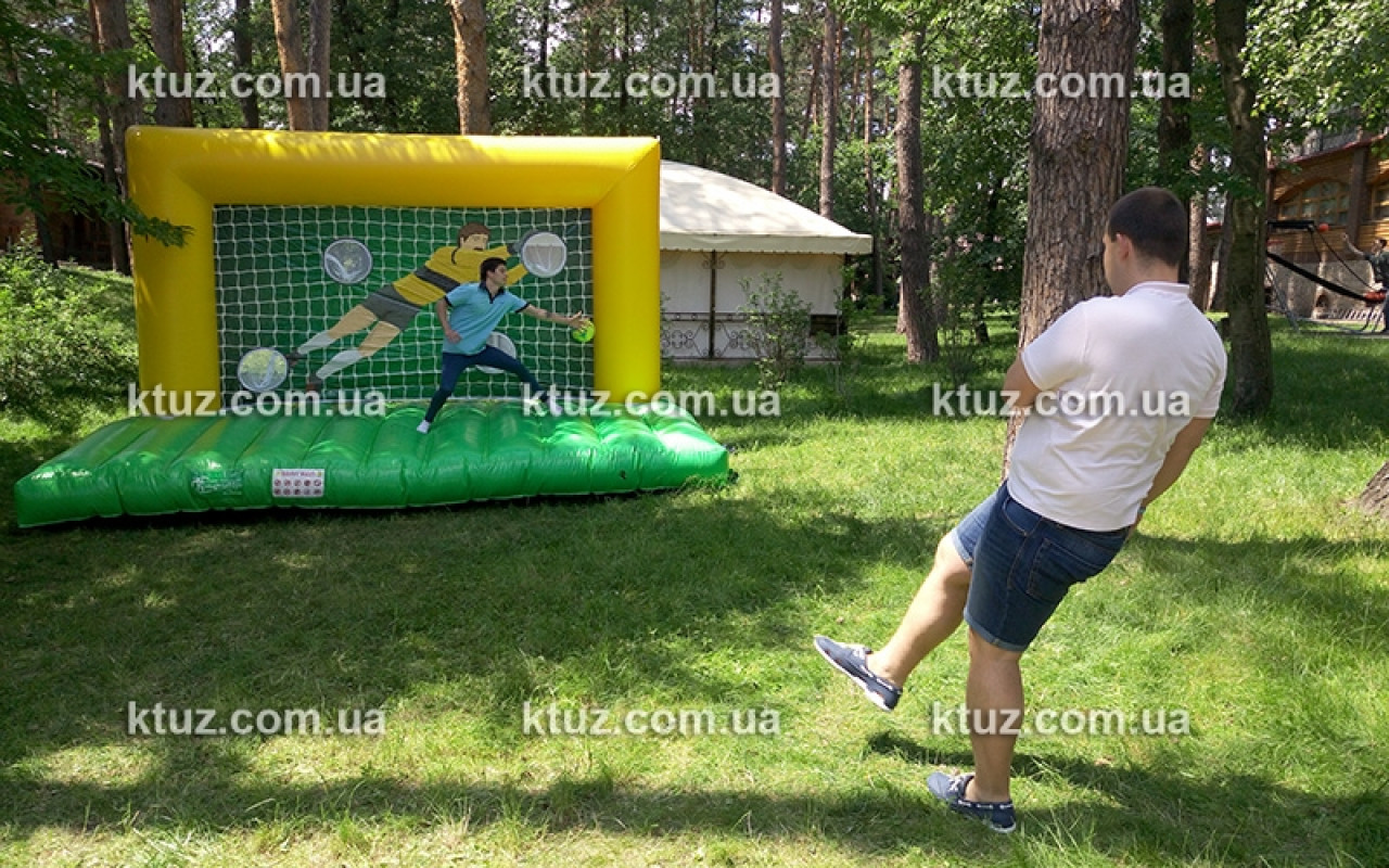 Аттракцион представляет собой надувной батут, одна стенка которого имитирует футбольные ворота, а пол размечен, как вратарская площадка. В стенке имеются отверстия, в которые нападающие должны забить мяч, а в воротах стоит голкипер, задача которого эти мячи перехватывать. При помощи батута можно организовать командное соревнование на меткость или поставить в ворота игрока, который должен будет перехватывать любые мячи. В аттракционе может участвовать любое количество желающих. Всем им гарантировано море удовольствия.