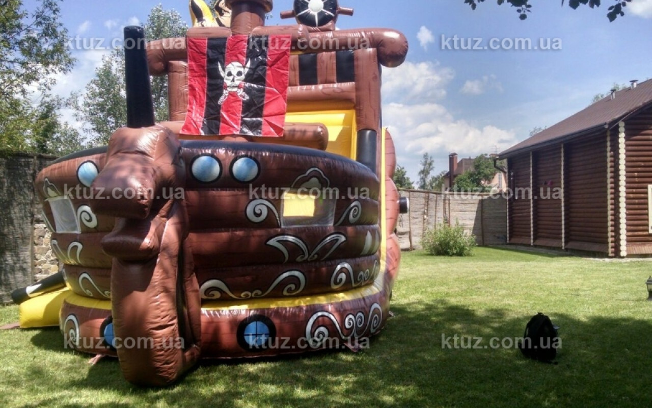 В детстве каждый из нас хотя бы раз мечтал стать пиратом, отправиться в плавание, чтобы найти сокровища. А сегодня каждый ребенок может воплотить эту мечту с помощью новой услуги компании Козырный Туз. Наш новый надувной батут Пиратский корабль перенесет малышей на морской берег и позволит насладиться захватывающими приключениями. Батут станет главным развлечением на детском празднике в пиратском стиле. С помощью такой услуги Вы подчеркнете тематику. Особенно, если праздник будет проходить на свежем воздухе. Выполнен батут в виде пиратского корабля, на котором присутствуют главные его атрибуты: штурвал и матча. На таком корабле юные пираты могут инсценировать захват пиратского корабля, а также битву пиратов и моряков. Родители будут абсолютно спокойными, ведь наш аттракцион надувной и на нем нет острых и твердых предметов. Дети спокойно могут бегать и прыгать!