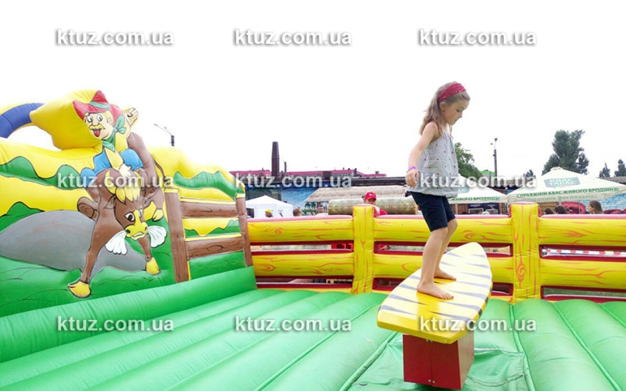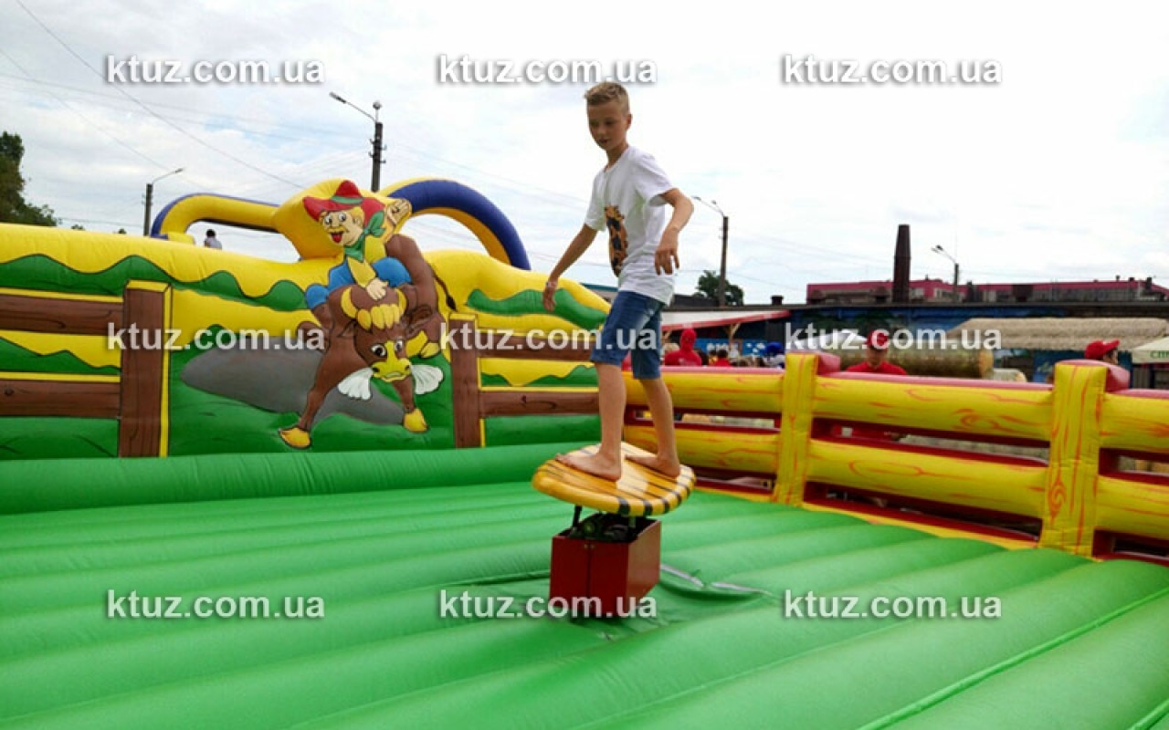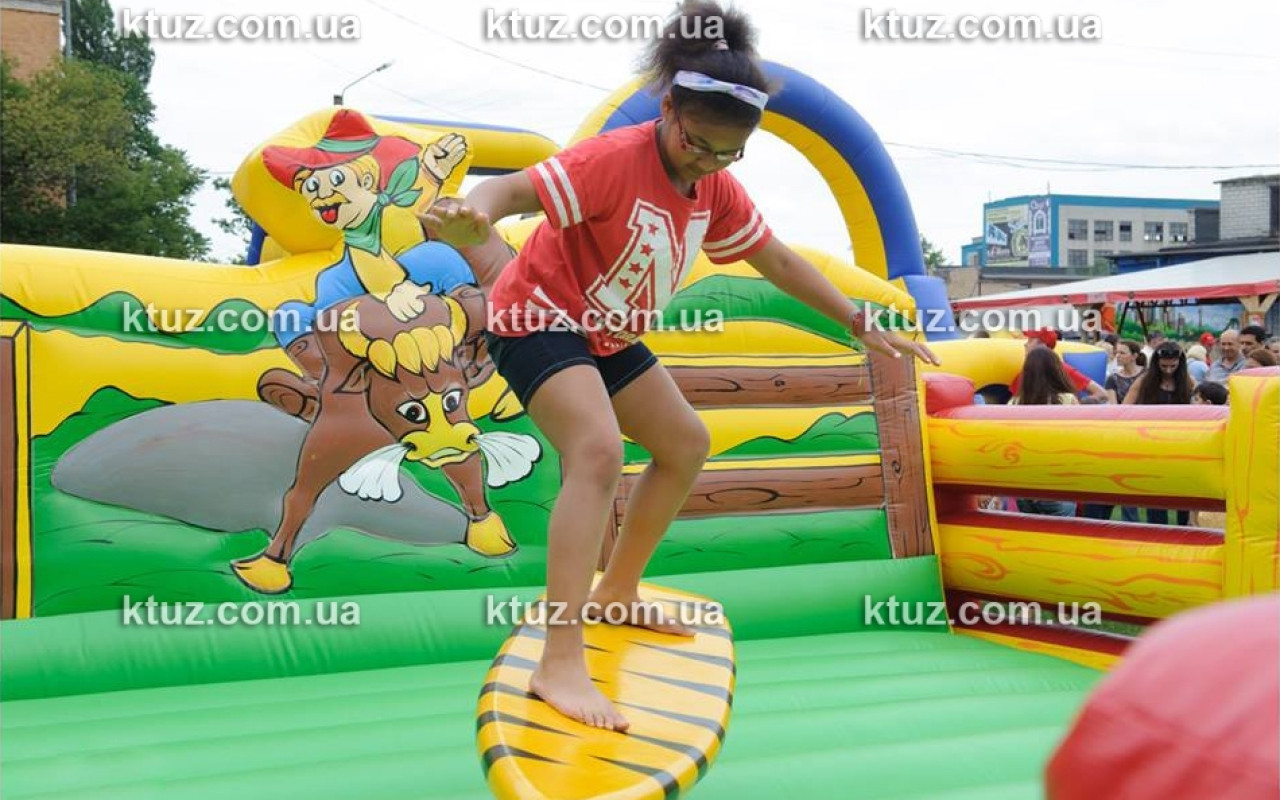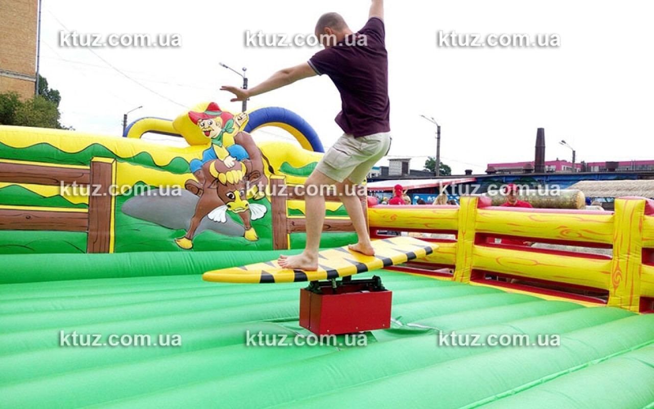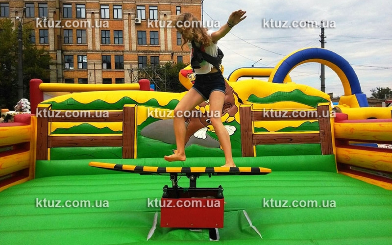 Это огромная надувная площадка с установленной посередине доской для серфинга. Доска приводится в движение специальным механизмом, установленным под ней. Игроку необходимо удерживать равновесие, ведь доска двигается, как настоящая. Поэтому новички часто падают. И в этом случае их защищает надувной батут – мягкое поле, которое убережет от ушибов. В таких безопасных условиях Вы можете выучить основные правила занятий серфингом. К тому же, Вы сможете провести необычный конкурс на празднике. Гости охотно продемонстрируют свои умения.