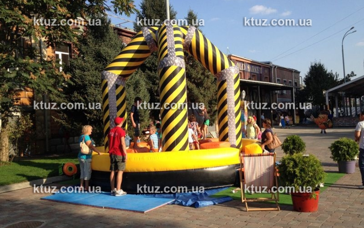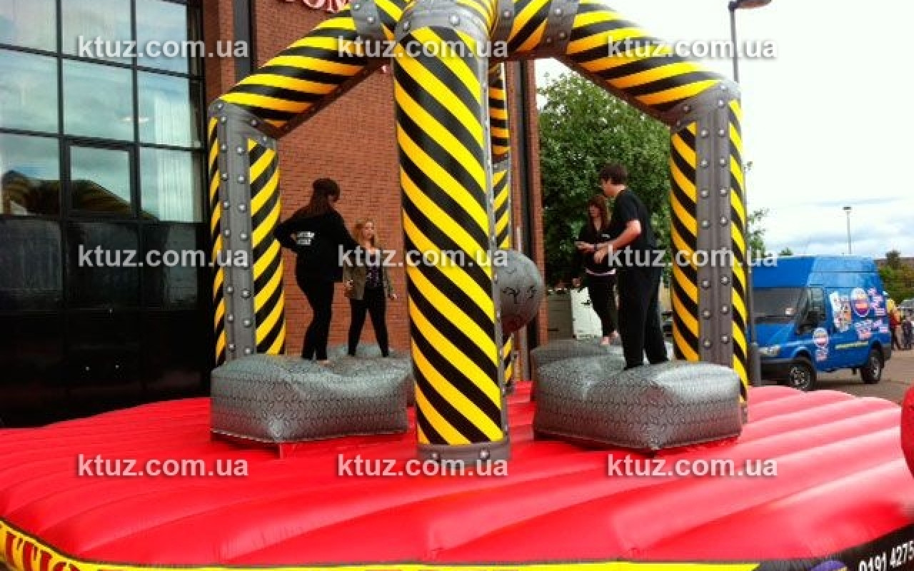Специально к сезону праздников на природе, компания Козырный Туз приготовила все Вас новый оригинальный аттракцион. Такое развлечение можно найти только у нас. Эксклюзивная новинка Шар-маятник относится к надувным аттракционам и может дополнить прекрасный пикник, тимбилдинг, день рождения или свадьбу. Суть игры на нашем новом аттракционе проста. Здесь принимает участие 2-4 человека, каждый из которых становится на специальный круглый подиум. Огромный мягкий шар подвешен на прочный тонкий канат в центре круга. Игрокам необходимо толкать шар друг другу, пытаясь сбить соперника с подиума. За счет того, что весь аттракцион надувной, удержаться на ногах не так уж и легко. Здесь нужно четко держать равновесие.