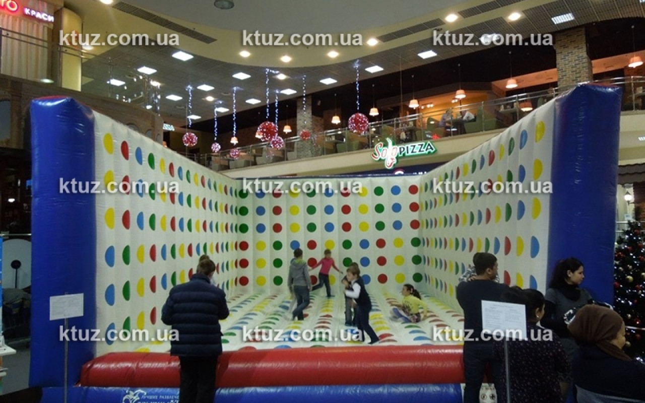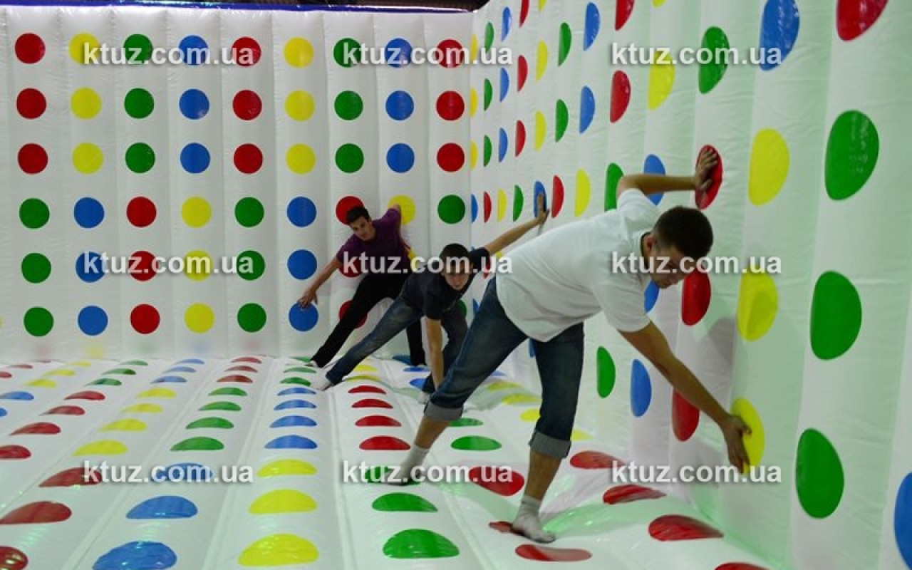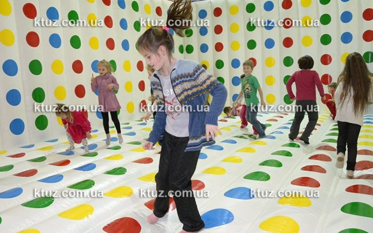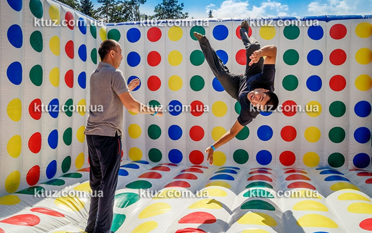 В нашем аттракционе ход для игроков выпадает на специальном колесе фортуны, где указаны цвета кружков и части тела. Поле, на котором Вы должны осуществить ход, выбираете сами. Батут 3DТвистер превратит Вас в настоящего гимнаста. А позы, в которых будут «застывать» все игроки позабавят остальных гостей. Многие Ваши друзья и коллеги даже и подумать не могли, что умеют проделывать подобные акробатические трюки. Однако наша услуга позволит раскрыть таланты!