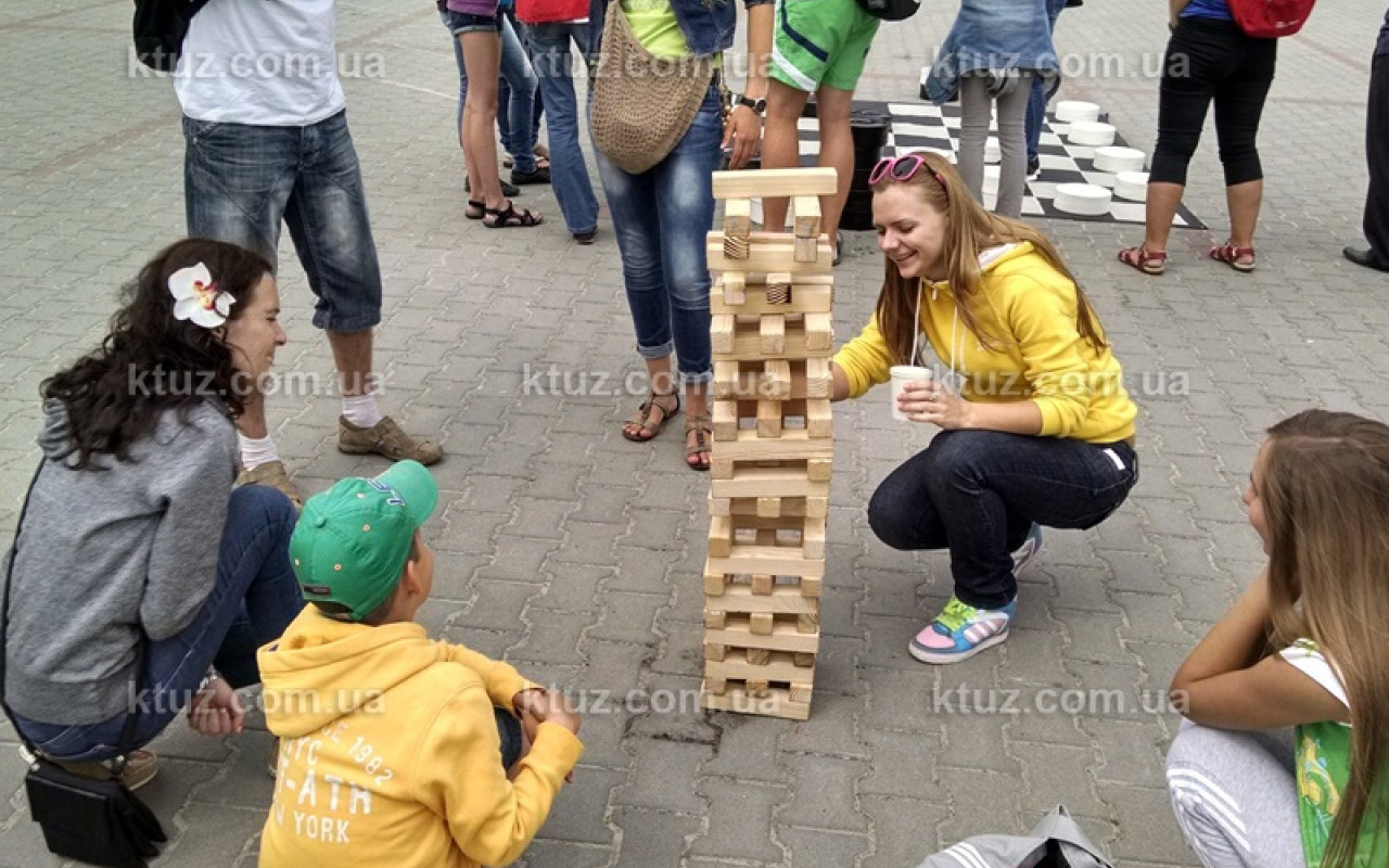 Дата мероприятия: июль 2015Место проведения: Львов, Бухта ВикинговНаши услуги: Парковые шашки, арена гладиаторов, надувной твистер, командный дартс, козырная башня