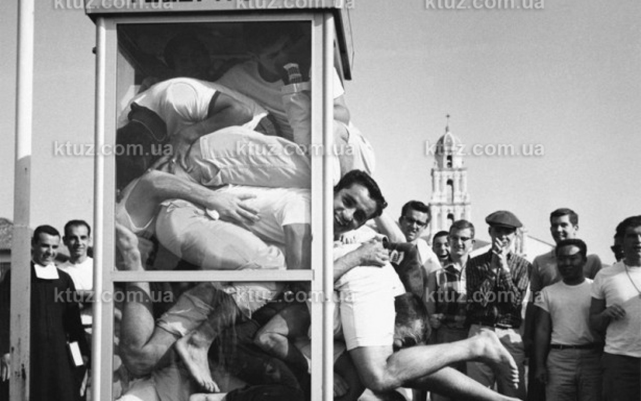 Одним из известных видов состязаний , проводимых в 1950-х годах по всему миру, была толкучка в телефонной будке. Группа участников битком набивались в небольшую конструкцию, стараясь превзойти результат по количеству разместившихся в будке людей, полученный другими командами. Комфорт игроков ставится под сомнение, а вот публика получала ударную дозу веселья, наблюдая за попытками очередного участника протиснуться в конструкцию.