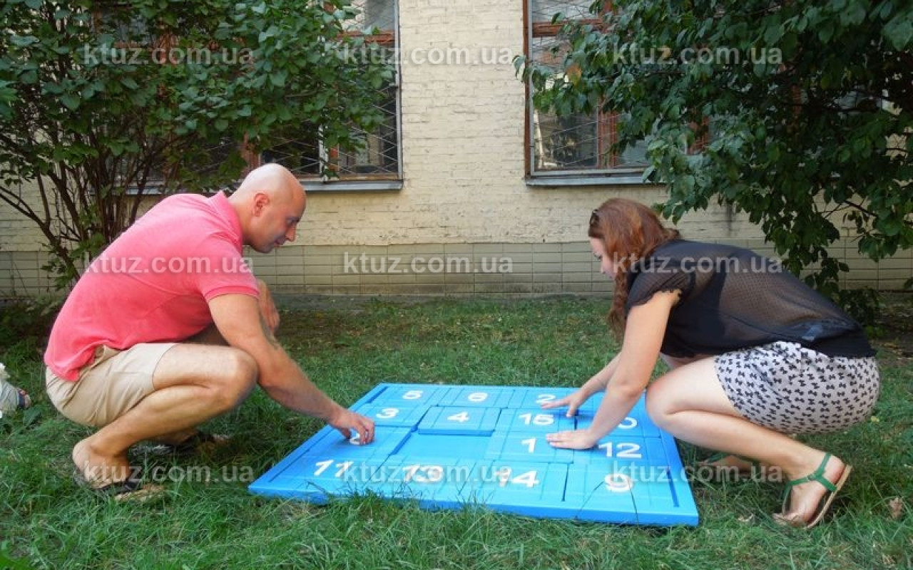 Гигантские пятнашки – занимательная игра для частных праздников и корпоративов. Головоломка дополнит любую тематическую вечеринку. Большой формат игрового поля и яркие фигуры делают Пятнашки отличным дополнением. Установить большие Пятнашки можно на любой ровной поверхности: пол, асфальт, трава, стол.