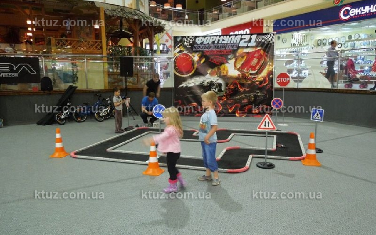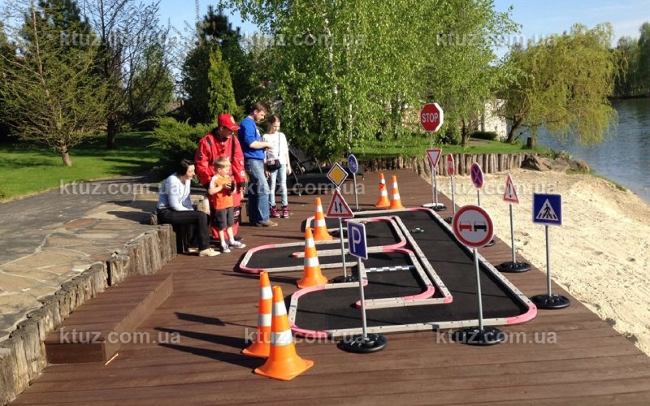 Козырный Туз подготовил оригинальную возможность наглядно показать и рассказать деткам об основных правилах дорожного движения. Для этого аттракцион Формула 21 дополняется оригинальными дорожными знаками. Они расставляются по всей длине трассы. Таким образом, на празднике дети могут пройти мастер класс по правилам дорожного движения.