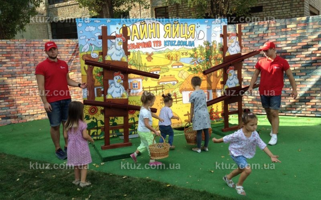 Компания Козырный Туз предоставила для такого праздника две супер новинки – надувной батут-Шар-маятник и аттракцион Файні яйця. И взрослые, и дети высоко оценили замечательные игры. Такие аттракционы позволяют разнообразить досуг на празднике по любому поводу.