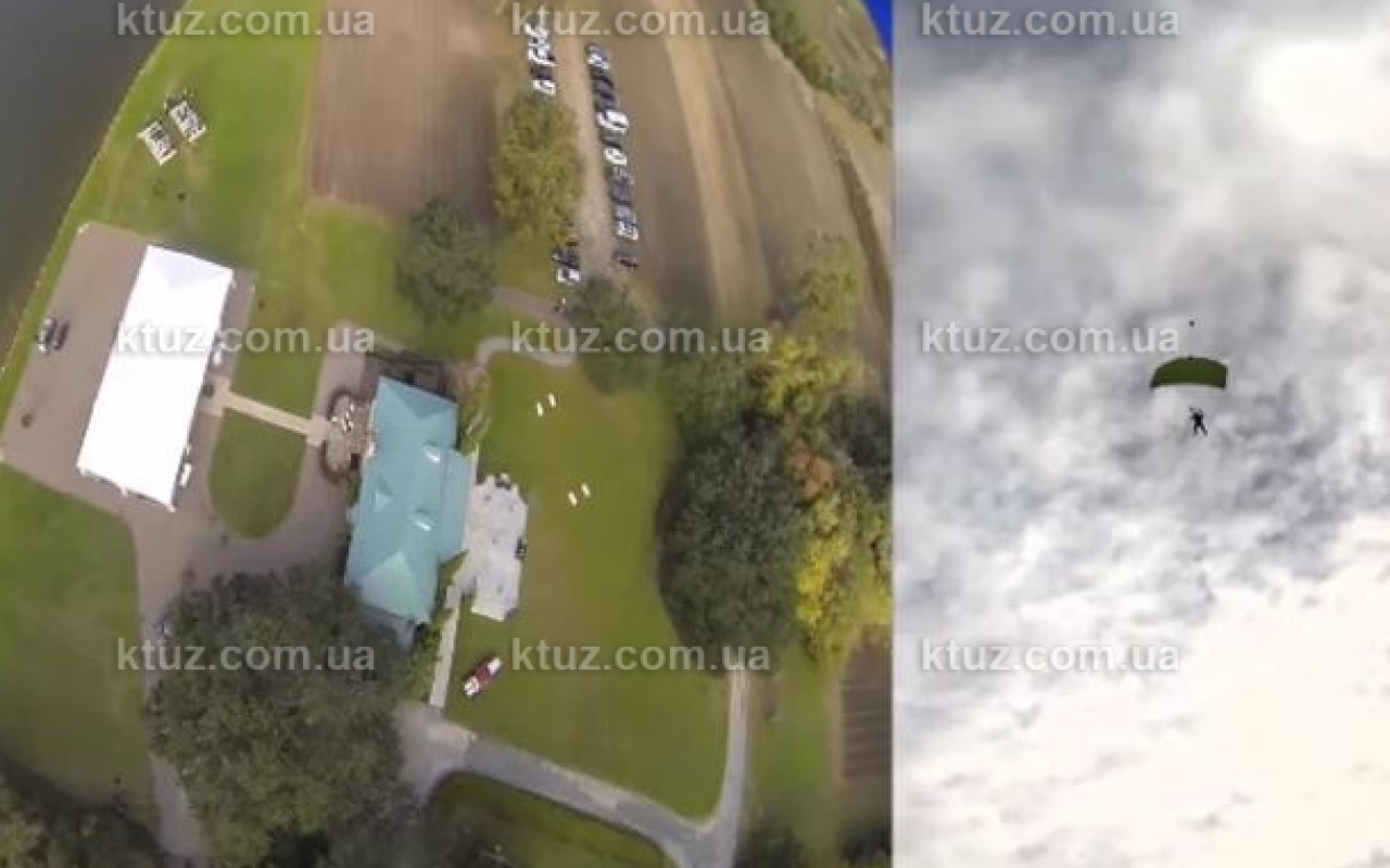 В США прошла еще одна необычная свадьба. Жених попал на церемонию не обычным путем, а экстремальным. Он спустился к месту ее проведения с парашютом и снял видео своего полета и приземления. Ролик можно увидеть на его канале в YouTube.