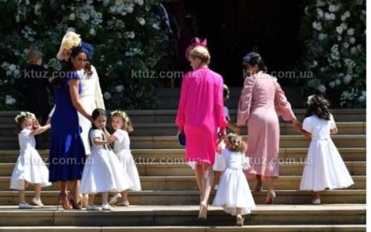 Прибыли и члены королевской семьи: принцессы Анна, Беатрис и Евгения, а также принц Эдвард. Последними на бракосочетание прибыли Кейт Миддлтон с подружками, царствующая королева Елизавета и принц Филипп. Так как отец Меган Маркл не смог присутствовать на церемонии, под венец невесту отвел принц Чарльз, отец принца Гарри. А принцесса Шарлотта стала подружкой невесты.