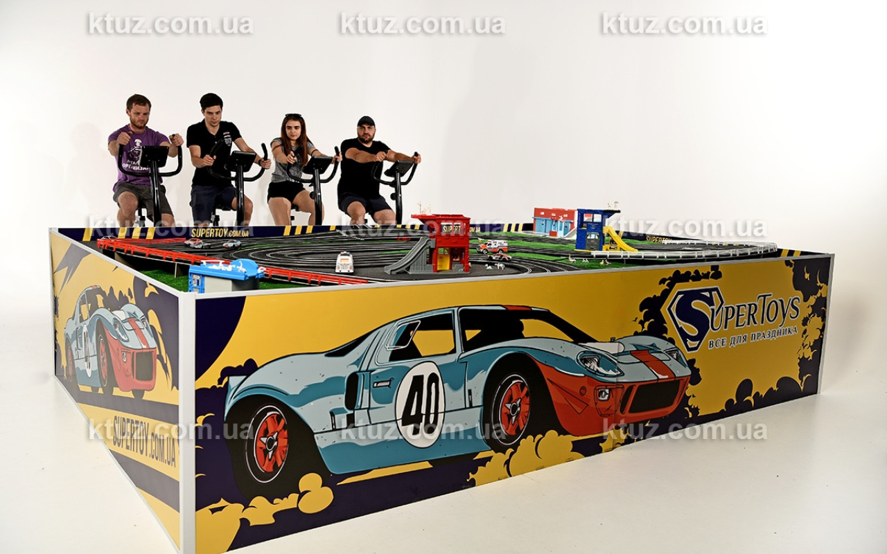 Чтобы организовать для своих друзей или коллег такое необычное развлечение, обратитесь в компанию "Козырный Туз". Аттракцион отлично дополнит рекламную акцию, тимбилдинг и другие мероприятия, где есть зрители и те, кто хочет посоревноваться в ловкости управления гоночными машинками и умении крутить педали.