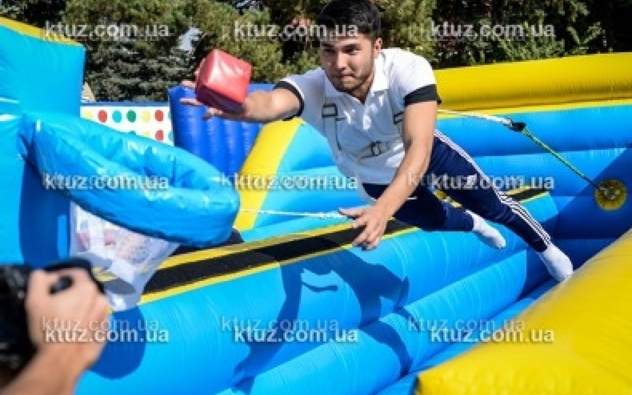 Чтобы не просто развлечь подростков, а наглядно им показать, насколько может быть сложным путь к достижению цели, закажите надувной аттракцион "Лестница успеха". Батут состоит из двух лестниц, по которым одновременно пытаются подняться на вершину. Сложность прохождения этапа заключается в том, что достаточно сделать одно неверное движение, и ты свалишься вниз. А это значит, что все надо начинать сначала, пока один из участников не пройдет весь путь без ошибок.