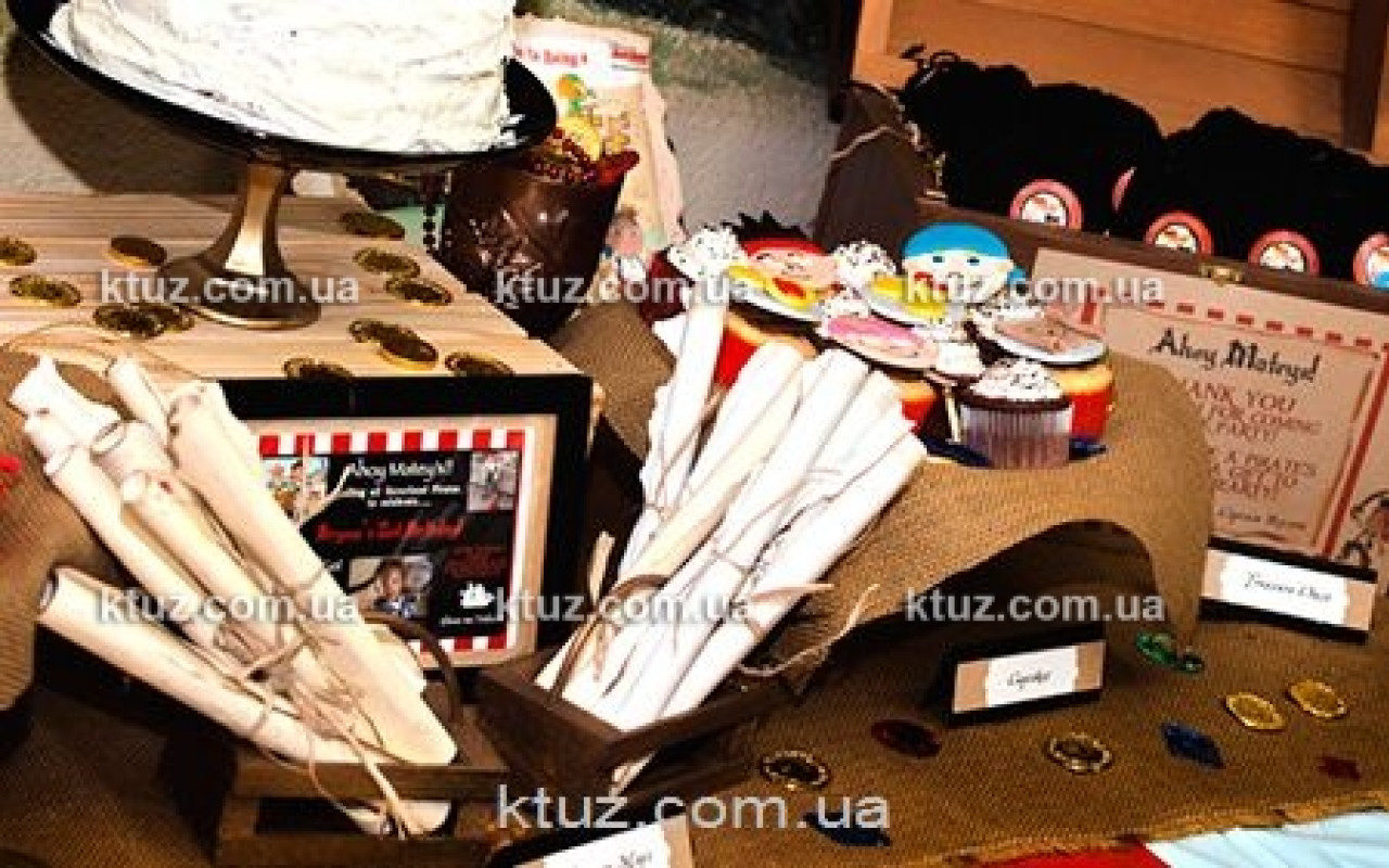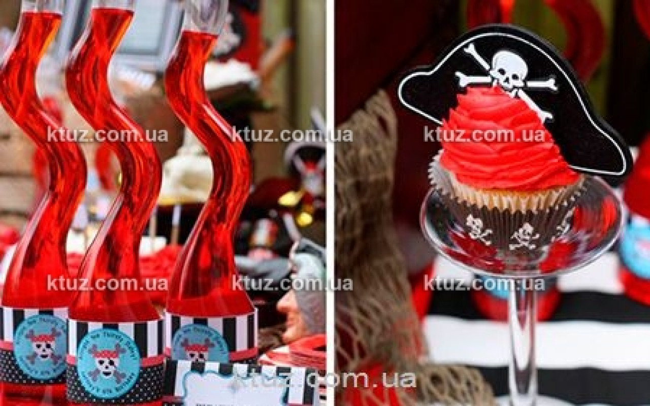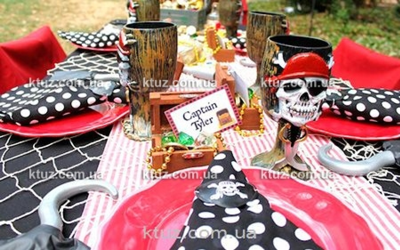 А теперь поговорим о дресс-коде. Конечно же, тематический праздник не может обойтись без костюмов. Чтобы погрузиться в пиратскую атмосферу, гости должны превратиться в самых настоящих пиратов. А сделать это можно благодаря тельняшкам, шляпам-треуголкам, повязкам на глаза, игрушечным саблям и кинжалам. «Про запас» лучше подготовить пару наборов аксессуаров для тех гостей, которые придут без костюма.