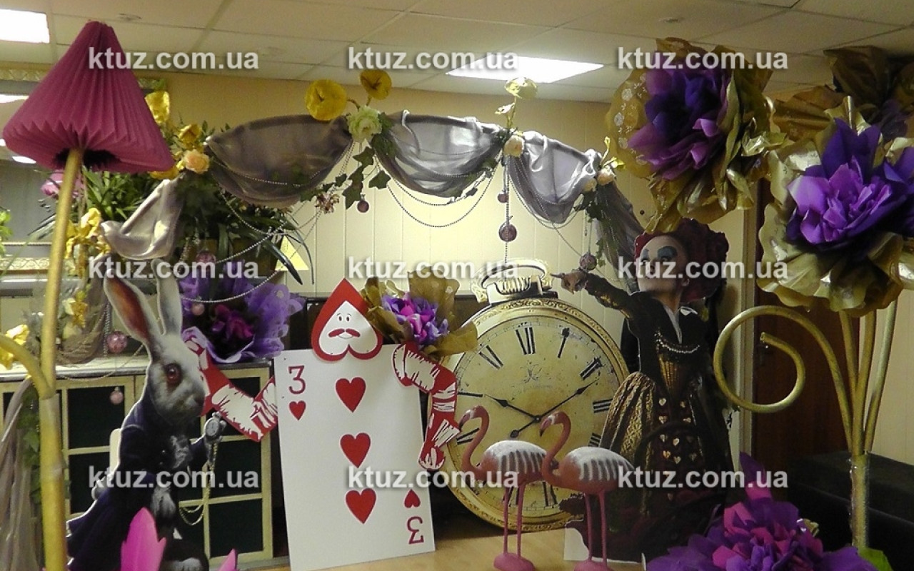 В сказке присутствует большое количество удивительных вещей: огромные грибы, гигантские шахматы, фламинго и многое другое. Все эти аксессуары и предметы интерьера мы привезем и установим в любом помещении. Таким образом, Вы попадаете в самую настоящую страну чудес! Мы предлагаем Вам декор в аренду для самого эмоционального и волшебного праздника.