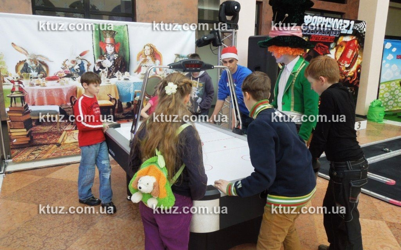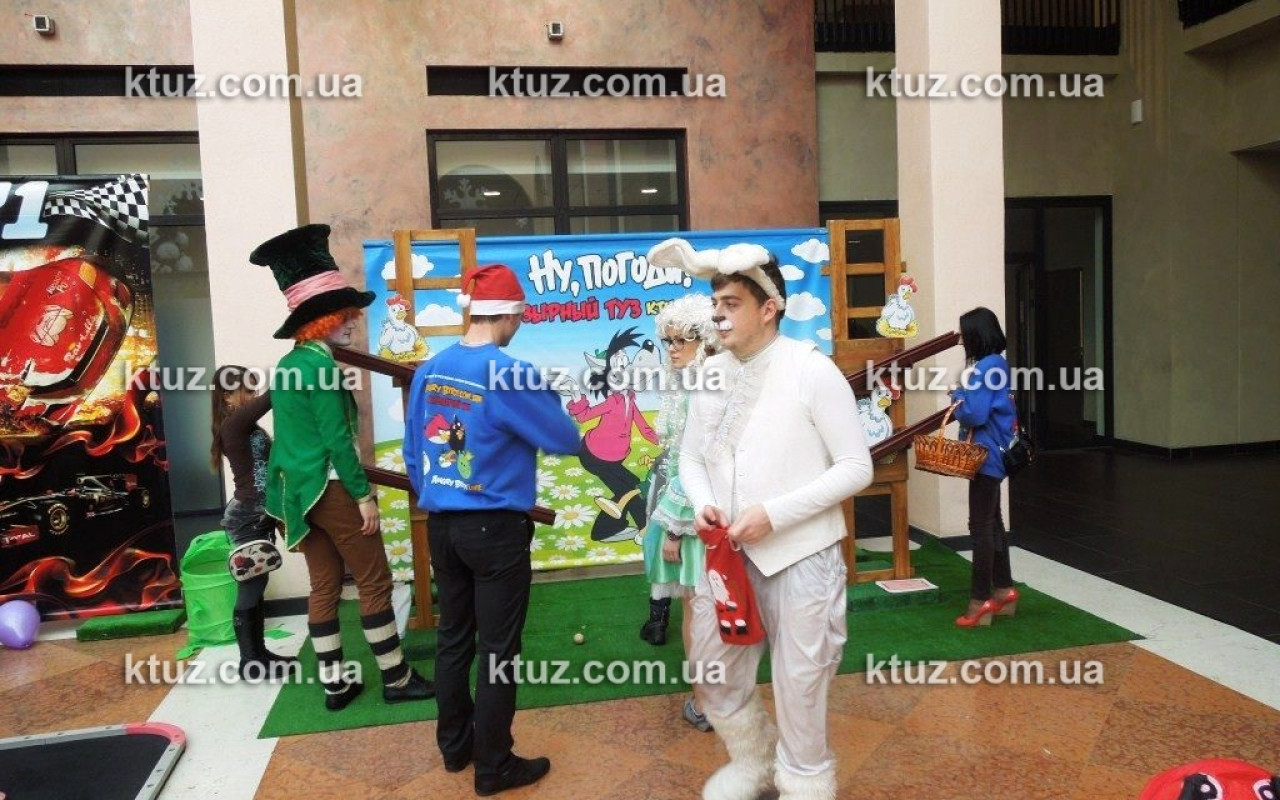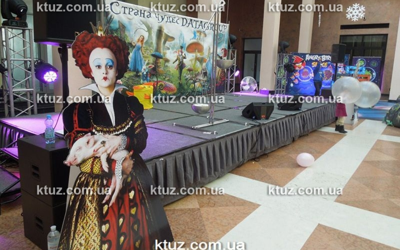 Очень важный момент при подготовке такого сценария – декорирование помещения. Для этого у нас есть красочные баннеры со сценами из сказки, а также фигуры главных героев. Для дополнения интерьера все помещение будет увешано огромными игровыми картами, большими надувными шарами и детскими горками и домиком. К тому же, практически все наши аттракционы оснащены прекрасными баннерами, которые также дополнят интерьер.