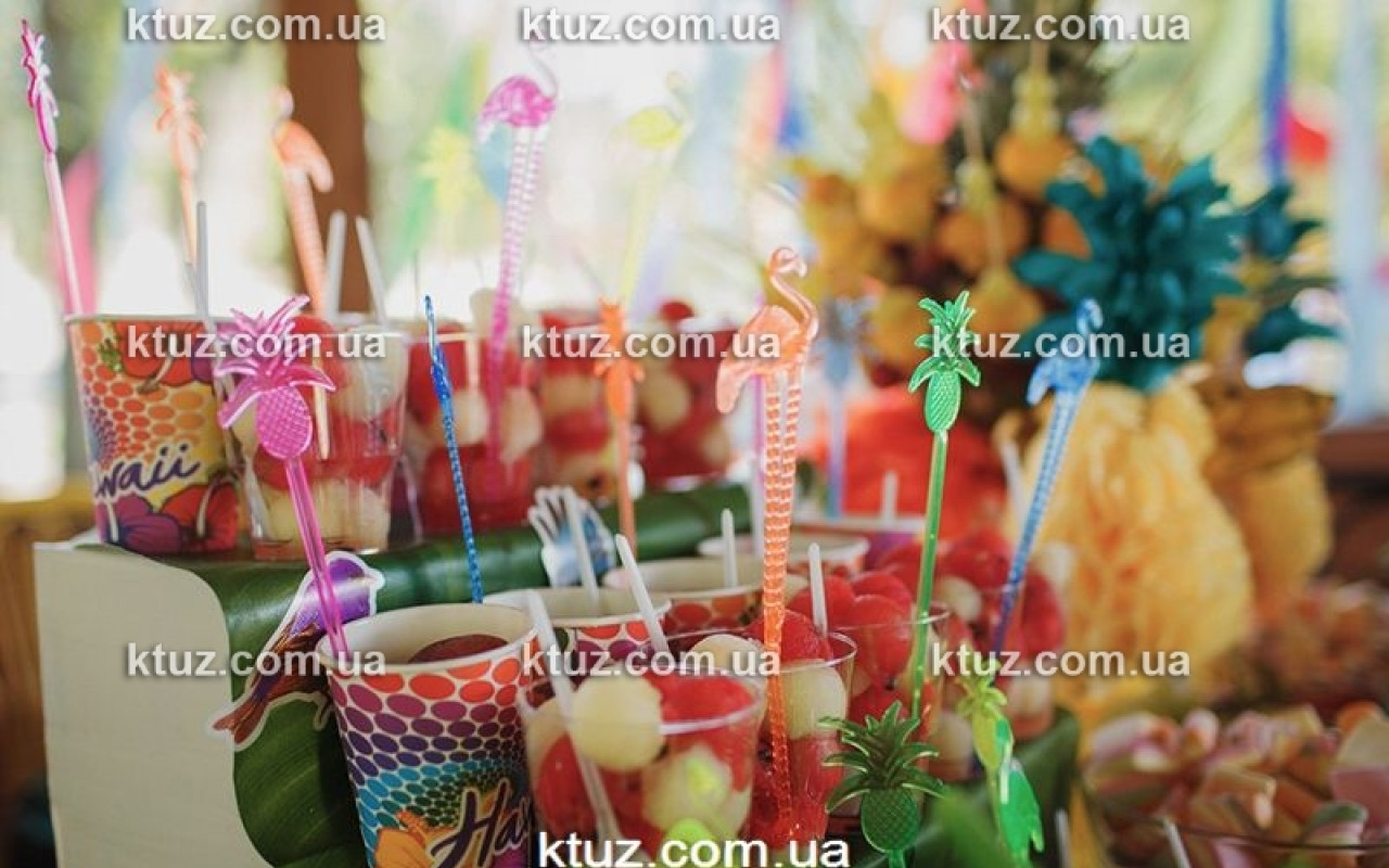 Оригинальным и приятным моментом будет разбивание пиньяты. Ее можно выполнить в форме ананаса или другого тропического фрукта. Наполнить пиньяту можно и конфетами, и небольшими сувенирами для всех гостей праздника.