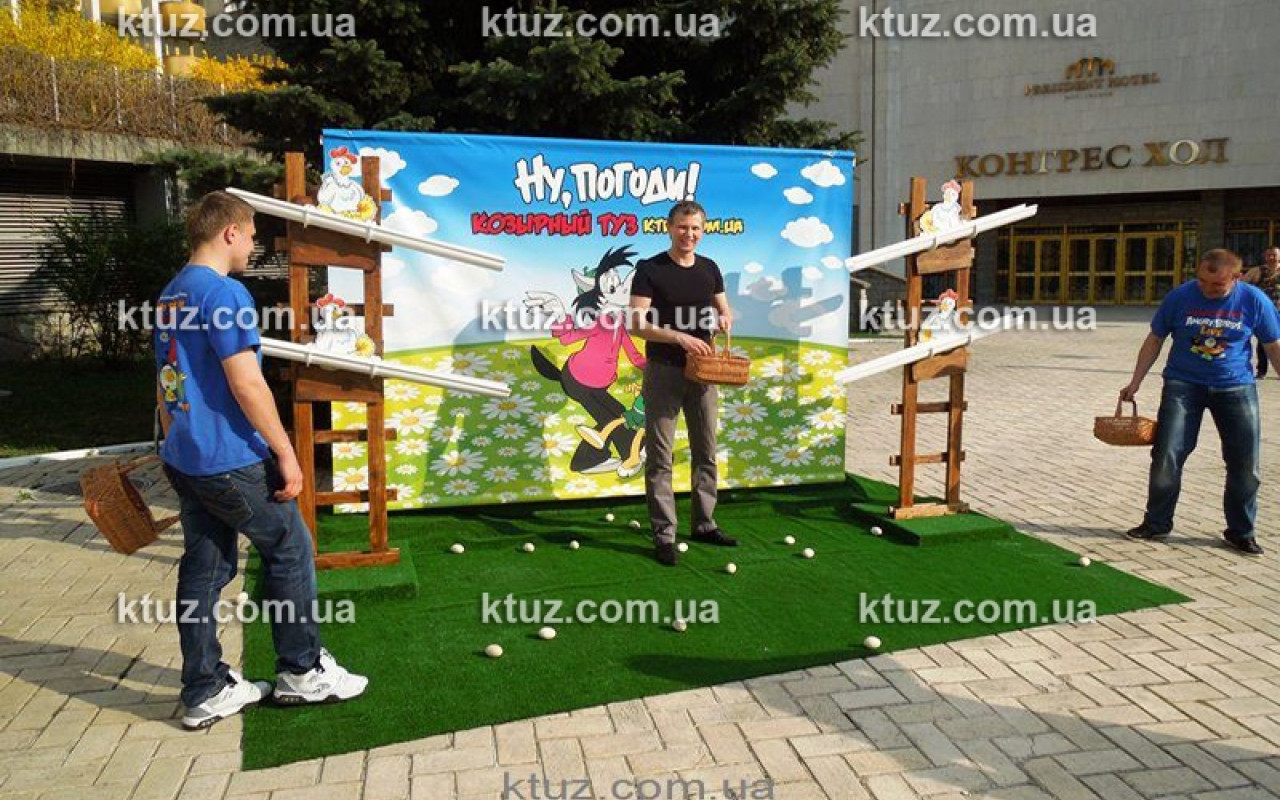 Для Вашего праздника мы приготовили уникальные игры, многие из которых Вы помните с детства. Только они все усовершенствованны! Например, известная советская портативная игра «Ну, погоди!» – это любимое электронное развлечение. Мы же предлагаем «живую» версию. Вы будете играть роль волка – собирать яйца, которые несут куры. Словите в лукошко как можно больше яиц – получите звание лучшего волка!