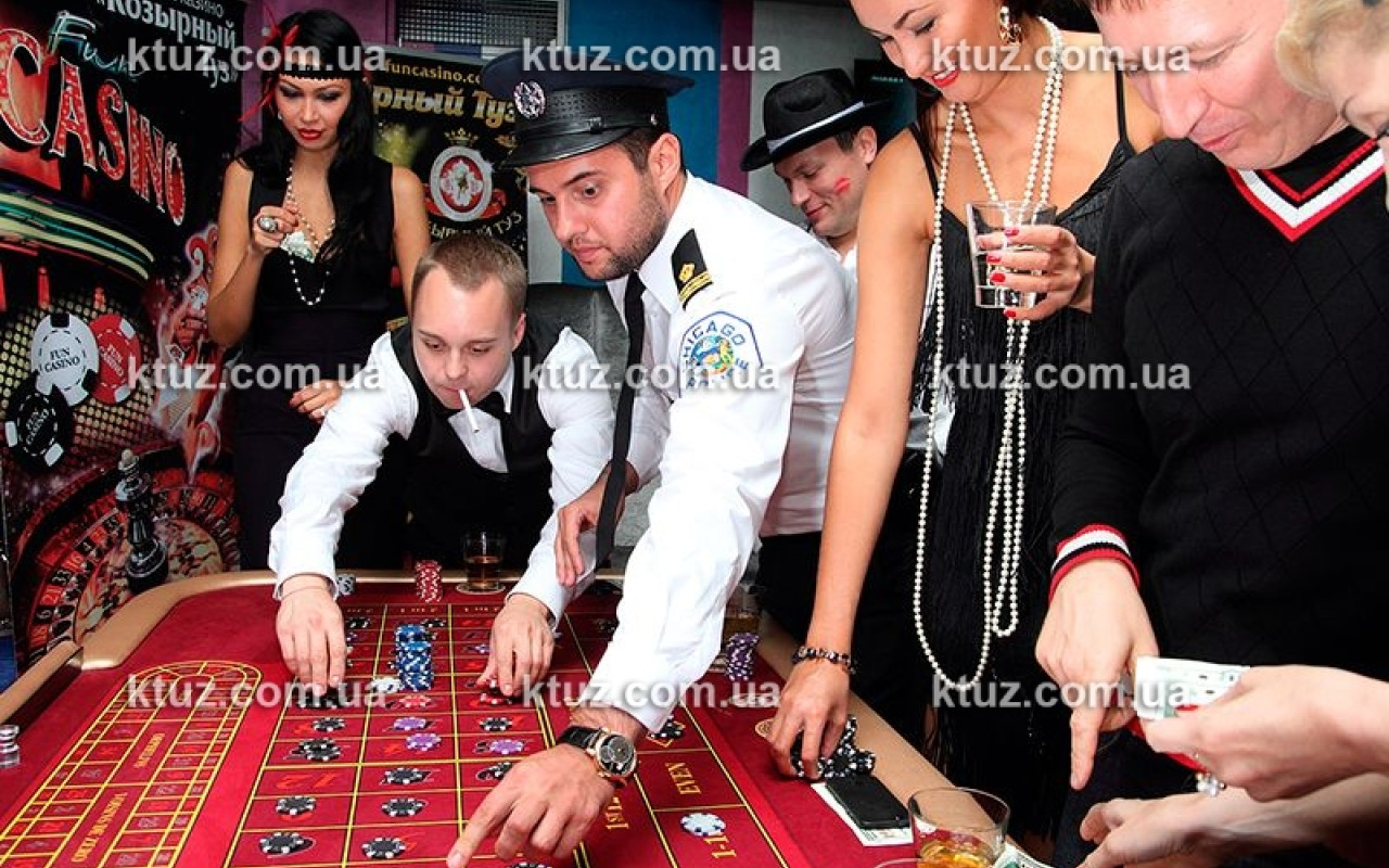 С помощью наших аттракционов Вы проведете лучшие конкурсы для гостей вечеринки. Мы подберем самые удачные игры для Вашей тематики. Атмосферу сбора гангстеров как нельзя лучше подчеркнет выездное фан-казино. Азартные игры от компании Козырный Туз абсолютно легальные. Однако Вы сполна ощутите адреналин и заряд позитивных эмоций от игры в покер, Блек Джек, крэпс и рулетку. Звоните, и наши менеджеры проконсультируют Вас, подобрав оригинальные и эксклюзивные аттракционы для гангстерской вечеринки.