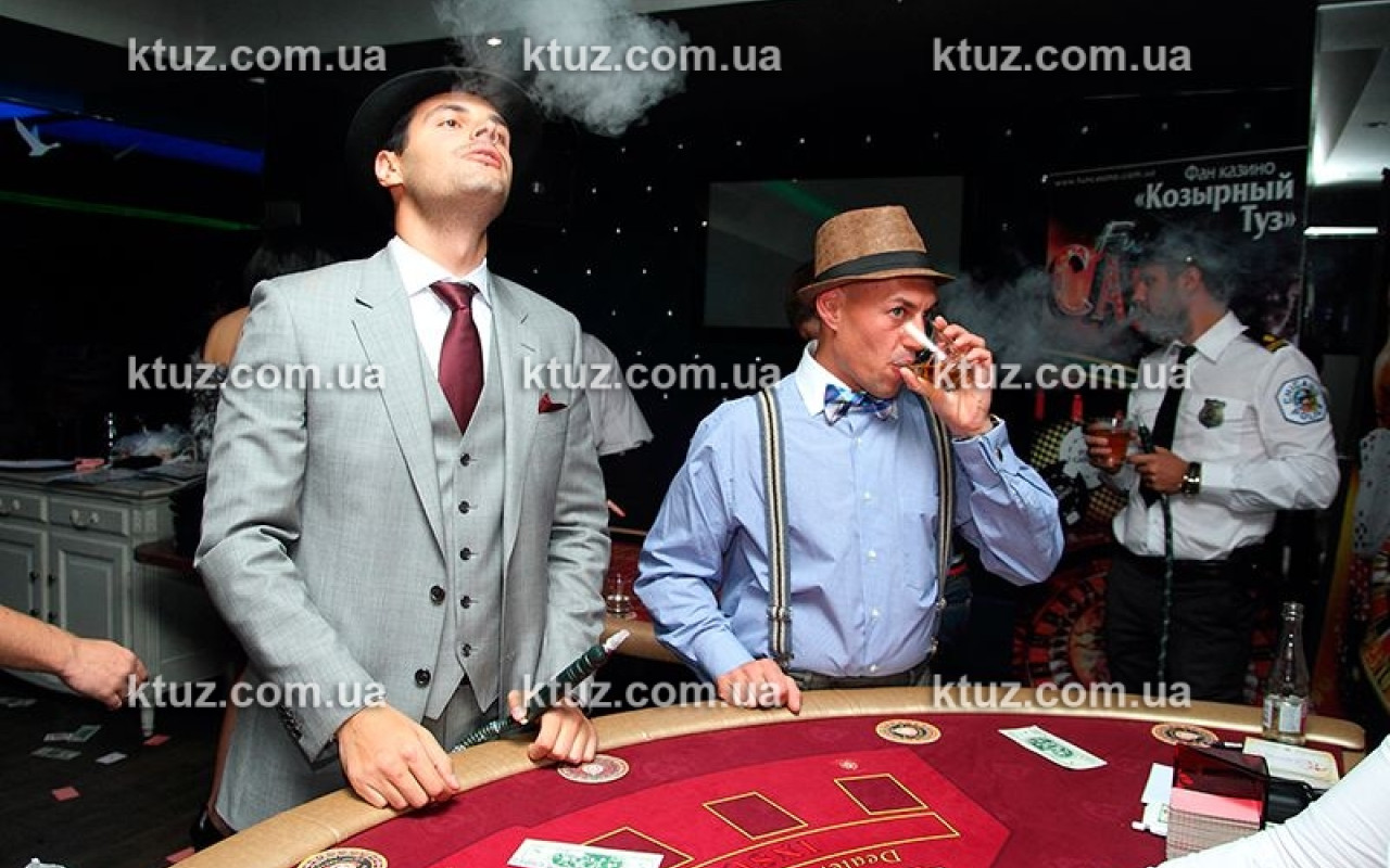 Компания Козырный Туз предоставит оригинальный гангстерский декор для Вашей вечеринки. Каждому гостю мы предоставим необыкновенный аксессуар на выбор: шляпы, боа, повязки, муляжи пистолетов, мундштуки многое другое. По Вашему желанию, мы сможем подобрать гангстерский костюм специально для Вас, либо предоставим широкий выбор ярких элементов для Вашего образа.