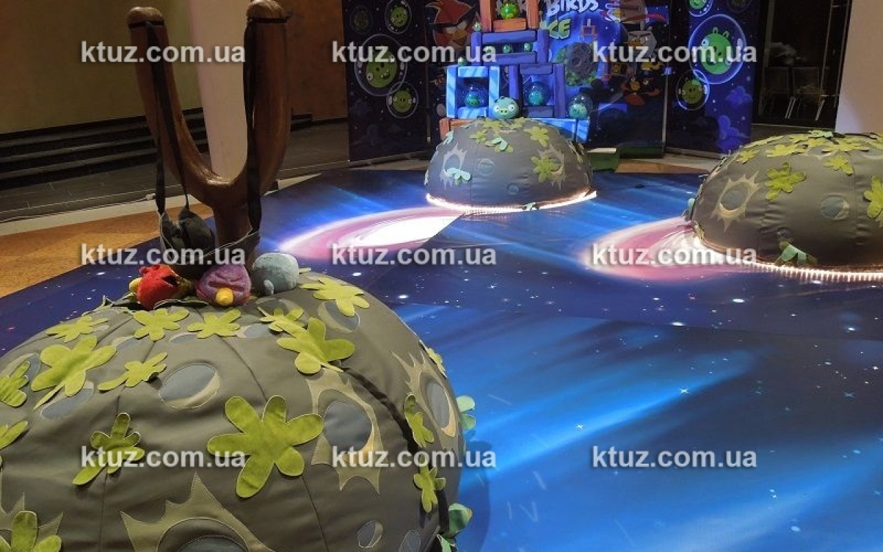 Отдельно стоит рассказать о декоре. Мы ведь находимся в космосе, а значит, Вас окружают планеты из папье-маше. Они, кстати, с небольшим сюрпризом – внутри каждой находится что-то интересное. Каждый, кто сможет разрушить планету, получает ее содержимое!